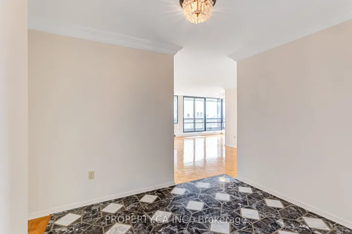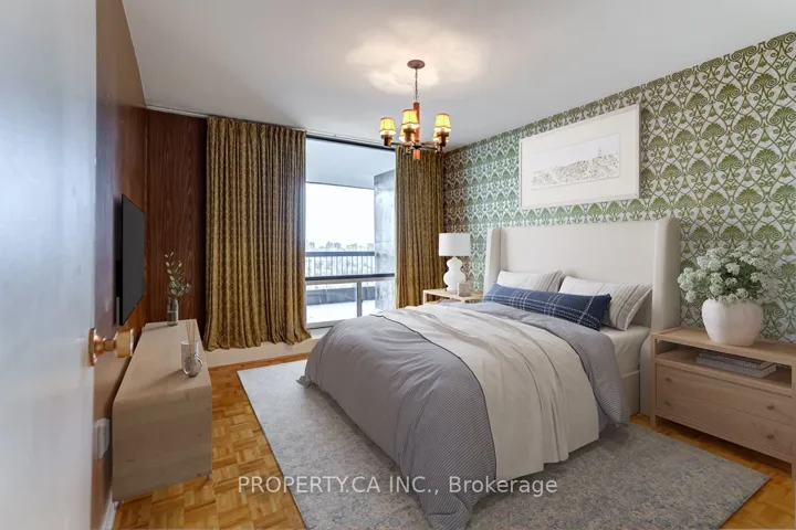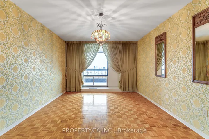 +"PublicRemarks": "Rare opportunity to own a spacious corner suite on the 26th floor with breathtaking unobstructed south-east city views. This bright and functional 2-bedroom, 2-bathroom layout offers over 1,000 sq. ft. of living space and an incredible wrap-around balcony, perfect for taking in panoramic skyline views. Featuring a generous open-concept layout with a dedicated living and dining area, oversized primary bedroom with ensuite, ample closet space, and a dedicated vanity/dressing area. The second bedroom is generously sized, ideal for a full bedroom setup, guest space, or home office. Parquet flooring throughout and an excellent overall flow enhance the space. This is your chance to renovate and customize to your taste, or move in and enjoy the space as-is. Includes parking and locker. Located in a quiet, well-managed building with reasonable maintenance fees, just steps to TTC, parks, community centre, schools, and shopping."