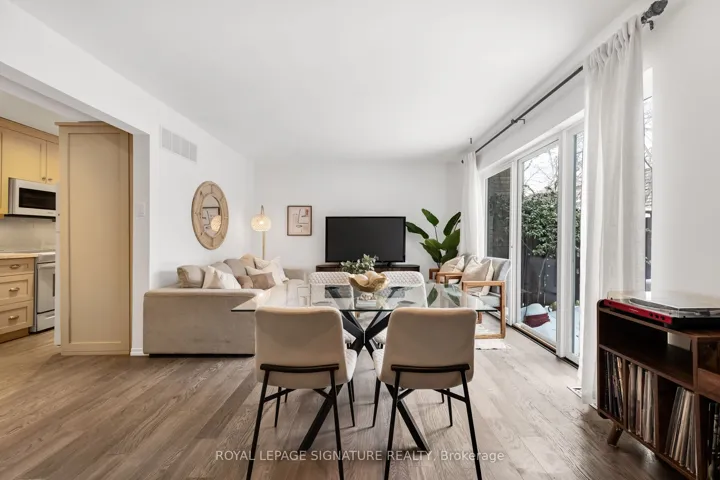 +"PublicRemarks": "Skip the High-Rise. Keep the Lifestyle. Tucked into the quiet Bayview Millways enclave on low-traffic Sugar Millway, this condo townhouse lives larger than expected - and quieter than you thought possible. Nearly 1,300 square feet span three finished levels. The living and dining area is filled with natural light from oversized windows, creating an open, calm feel. A fully enclosed private patio, framed by a mature Japanese maple, offers rare outdoor serenity. The primary bedroom feels expansive and airy, with two closets and generous proportions. A Moroccan-inspired bath adds warmth and character - deep soaker tub, gold hardware, boutique-hotel energy. The finished lower level adapts to your needs, with custom built-ins ideal for guests, a home office, or second bedroom - easily removed for a larger recreation space. New wood flooring throughout. HVAC replaced in 2024. Rare two-car parking - garage plus private driveway. Maintenance is effortless: snow removal, landscaping, lawn care, garbage and recycling at your driveway, plus roofs and windows all handled. Enjoy the outdoor pool in summer and a community known for its quiet, well-kept surroundings. Steps to groceries, cafés, parks and the arena. Minutes to ravine trails, TTC, York Mills Subway and Highway 401. Located within the catchment for Harrison PS, Windfields MS and York Mills CI. For first-time buyers seeking space - or downsizers wanting ease without compromise - this one simply makes sense."
