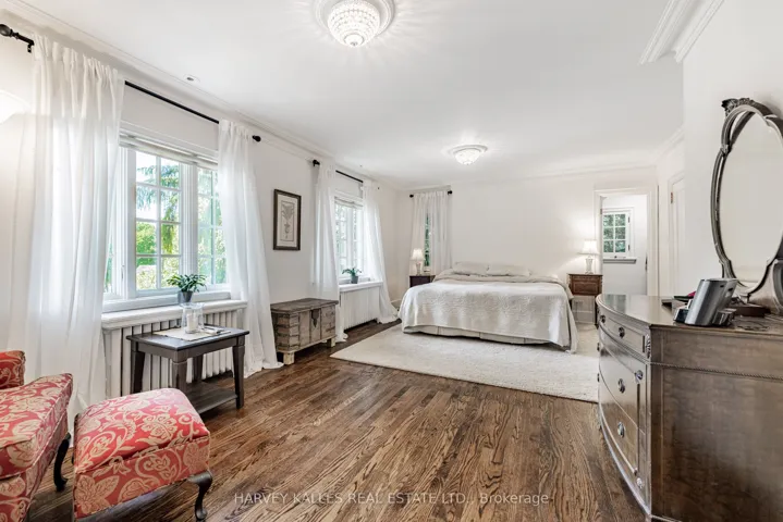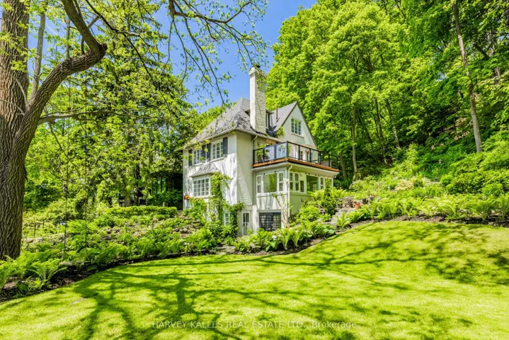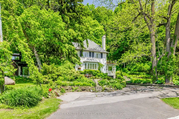 +"PublicRemarks": "Live in the forest! Blog TO's fairytale house (Blog TO May 2025) Tucked away on a cul-de-sac, this RAVINE lot with a forest-like setting, has 5 bedrooms and offers a rare blend of tranquility and urban convenience. Like a nature retreat just minutes from transit, this 1928 (Geowarehouse) home is Nestled on a lush, hilly, ravine and provides the peaceful ambiance while being conveniently located close to public transit and major city hubs. With multiple living spaces and Charming Character, the home's warm and cozy interiors feature timeless details, large windows that frame stunning views, well maintained with old world charm. The backyard (ravine) offers a perfect spot to connect with nature, like your own private forest. Experience the best of both worlds' peace and seclusion, with easy access to all the transit and the subway, all amenities of the city just minutes away. This unique property is perfect for those seeking a serene retreat without sacrificing the conveniences of urban living. A Wood burning fireplace in the huge south facing, living room with a built-in entertainment closet, a coffered ceiling in the dining room, plaster molding throughout main and second floors. Second floor laundry, large, spacious, primary bedroom with en-suite and walk out to private deck. New HVAC (2025) new Stainless-Steel fridge and microwave (2025), new bar fridge on 3rd floor (2025), wall mounted furnace/hot water tank (2015). Lower-level walks-out at grade. 2-pc washroom off the main foyer. Total 4,394 square feet including lower level - as per floorplans. The lot widens to 100 feet and extends back to 190 feet (see attached). Heated floors in Primary bathroom and lower-level bathroom. Tenanted. NOTE: Photos are from when it was vacant. Basement: Nanny suite with seperate bath and kitchen."