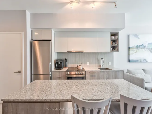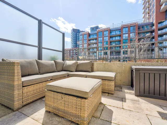 +"PublicRemarks": "Imagine being able to cool off in your own outdoor pool this summer, and then heading back to your stunning bright, well-designed 1-bedroom + den with soaring 9-foot ceilings and a private terrace that genuinely lives like a backyard. This is a main-floor unit with direct access to a generous ALMOST 300 SQUARE FOOT TERRACE, fully fenced for privacy. You have the luxury of being able to barbecue, entertain, or simply sit outside with your morning coffee without another resident in sight as it faces the peaceful and beautiful courtyard. For condo living, it is remarkably rare. Built in shelves in the den/dining area allow for plenty of storage. Private ensuite off the bedroom, and another washroom for guests. Easily fit 6+ people for dinner owned Bike Storage. Building amenities include an outdoor pool, fully equipped gym, concierge, yoga studio, pet spa, kids' playroom and more. Steps to Wilson Station for effortless access to downtown. Ideal for a professional or couple who values outdoor space, privacy, and quality of everyday life. Costco, Yorkdale, the Allen and 401 all around the corner!"