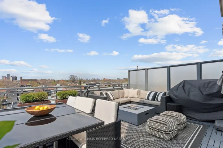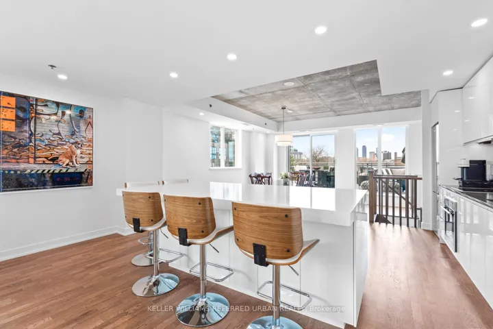 +"PublicRemarks": "This beautifully redesigned two-storey condo loft offers a refined blend of style and functionality, highlighted by custom upgrades throughout and a truly show-stopping terrace, complete with a gas fireplace and BBQ hookup, perfect for hosting unforgettable summer gatherings. Designed to feel like a standalone home, the space is filled with natural light from surrounding windows and features an upper level dedicated to entertaining, complete with its own bathroom, allowing guests to enjoy the space without accessing the private bedroom level below. The thoughtful separation between levels provides exceptional flexibility, making it easy to host, unwind, or enjoy a movie upstairs while maintaining a quiet, restful retreat downstairs. At the heart of the home, a large custom stone island serves as a versatile centrepiece, ideal for baking, additional storage, everyday workspace, or effortlessly transforming into a stunning buffet for entertaining. A rare opportunity to live in a fabulous condo in one of Toronto's most vibrant neighbourhoods, just steps to exceptional shopping, dining, nightlife, and transit."