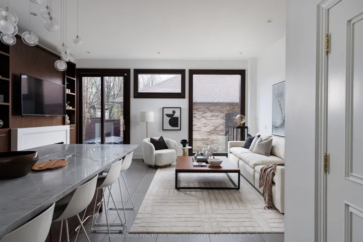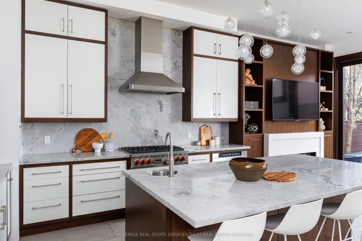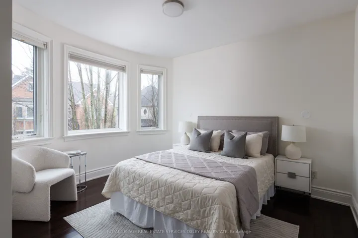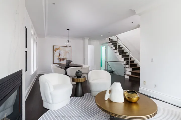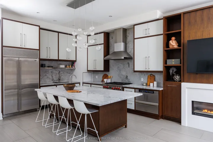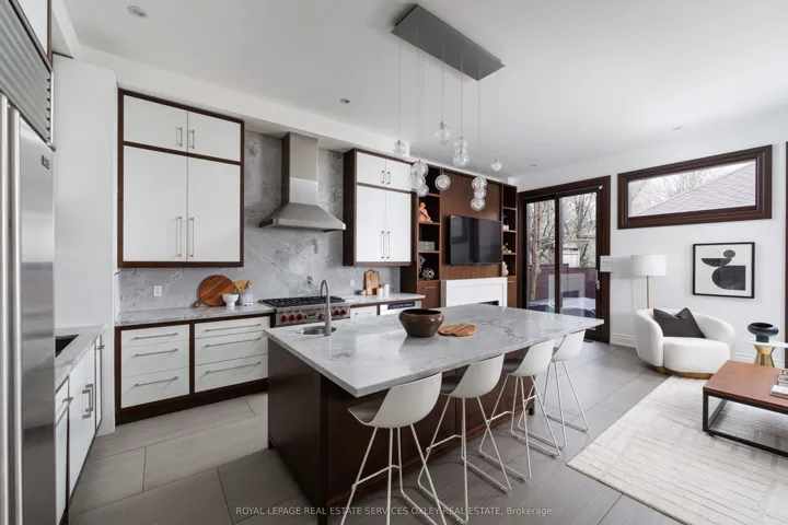 +"PublicRemarks": "Welcome to 46 Mathersfield Drive, an elegant semi-detached home on a coveted cul-de-sac in the heart of South Rosedale-one of Toronto's most prestigious and picturesque neighbourhoods. Surrounded by ravines, top-tier schools, and just minutes to downtown, this rare "25-year new-build" has been thoughtfully updated with extensive cosmetic enhancements and key renovations, offering a refined, contemporary aesthetic with ~3,500 sq. ft. of living space across all levels. Designed for comfort & sophistication, the home features soaring ~11' ceilings in the kitchen/family room, a rare 2-car garage, updated systems, and curated designer finishes throughout. A custom front door by Amberwood opens to a gracious living/dining area with crown moulding and a gas fireplace. The heart of the home is the RN Design & KGA Kitchens-designed kitchen and family room, showcasing custom cabinetry, quartz countertops, Sub-Zero and Wolf appliances, an oversized island with breakfast bar, and a walk-in pantry. Floor-to-ceiling windows fill the space with natural light and open to a private landscaped garden. Upstairs, the primary suite offers a Juliette balcony, walk-in closet, and a renovated 5-piece ensuite with freestanding tub, double vanity, and glass rain shower. Two additional bedrooms are generously sized, each with its own ensuite. A curved staircase beneath a large skylight enhances the home's bright, airy feel. The finished lower level includes above-grade windows, a rec room with gas fireplace, large gym, fourth bedroom, and 3-piece bath. Landscaped rear garden by David Scott Designs feature new stonework, fencing, a Sundance hot tub, direct gas line for BBQ's & exquisit city living. Steps to Rosedale Jr P.S., Branksome Hall, UCC, York School, parks, ravines, and TTC, with easy access to the city's best amenities. A rare opportunity to enjoy privacy, luxury, and an exceptional location in the heart of Toronto."