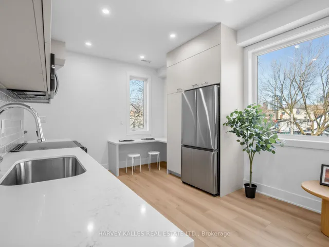+"PublicRemarks": "Tucked away on Bellevue Ave in the heart of Kensington Market, this brand new, never lived-in 1-bedroom, 1-bathroom two-storey suite offers a thoughtful blend of style and function across 663 sq ft. Featuring 9-foot ceilings and bright, modern lighting throughout, the space feels open and inviting. The custom kitchen is finished with sleek quartz countertops, while the two-level layout provides great separation between living and sleeping areas. Enjoy the convenience of in-suite laundry, a separate sump pump, and access to a beautifully landscaped common area. Complete with a security gate and bike locker, and just steps to some of the city's best restaurants, breweries, grocery shopping, TTC, parks, as well as nearby hospitals and universities, this is a turnkey opportunity in one of Toronto's most vibrant neighbourhoods."