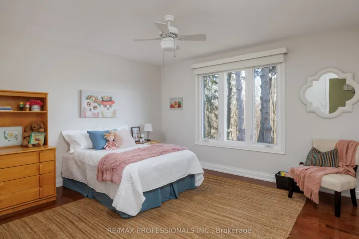 +"PublicRemarks": "Exceptional ravine property in the highly sought-after Hillcrest Village community! This beautifully maintained and extensively updated 5+1 bedroom, 4+1 bathroom home offers over 3700 sq. ft . of elegant living space. Fully finished walk-out basement and in-law suite-ideal for multi-generational living. The main level showcases a seamless, functional layout with gleaming hardwood floors, crown molding, and pot lights throughout. Spacious living and dining areas are perfect for entertaining, while the open-concept kitchen and family room feature double patio doors leading to a newly renovated deck with glass railings and breathtaking ravine views backing onto Duncan Creek. Also on the main floor, a powder room and a thoughtfully designed mudroom/laundry room with side entrance adding convenience and extra storage. The second level features five generously sized bedrooms, 2 with ensuites and skylights. An additional bonus room perfect for a cozy sitting area or home office with 3 large windows all overlooking the ravine. The walk-out lower level offers a private in-law suite complete with separate entrance, kitchen, bedroom, 3-piece bath, and ample storage space. Situated on a premium pie-shaped lot backing onto green space, this home also features professionally landscaped grounds and a fully renovated double car garage (2021) with spray foam insulation, upgraded lighting, acrylic flooring, and custom slat wall storage. Located in a family-friendly neighbourhood known for top-ranked schools including Arbor Glen Public School, Highland Junior High School, and A.Y. Jackson Secondary School, as well as nearby parks, ravine trails, and convenient access to transit, highways, and everyday amenities. This is a rare opportunity to own a turn-key home in one of North York's most desirable enclaves."