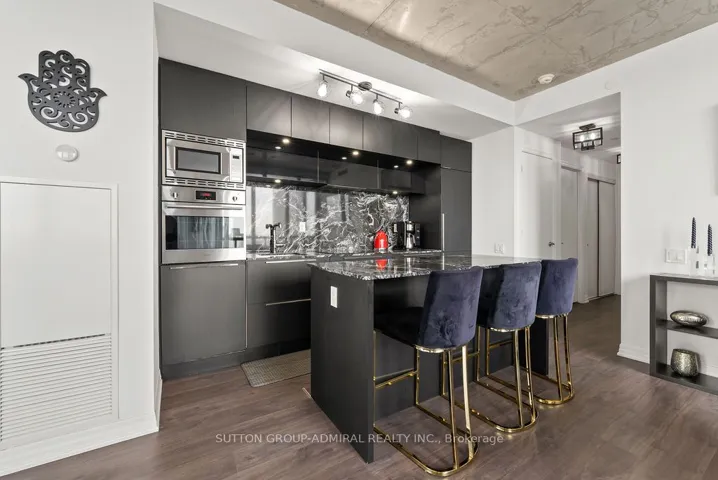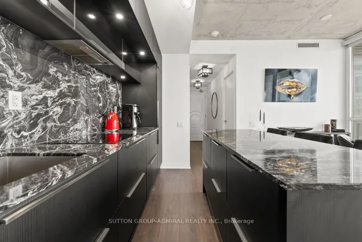 +"PublicRemarks": "Fully furnished corner suite at Bisha Hotel & Residences in the heart of King West. This sun-soaked 2 bedroom, 2 bathroom residence features rare southwest exposure, lake views, stunning sunsets, and floor-to-ceiling windows that fill the space with natural light throughout the day.Includes an oversized corner parking spot with the locker conveniently located directly beside it - a rare and highly practical setup for everyday living, storage, and easy unloading.Designed as a true turnkey home, the suite comes fully furnished with custom-made, high-end furniture and curated finishes throughout. Simply bring your clothes and move in. The functional split-bedroom layout offers privacy and comfort, while the open-concept living and dining area connects seamlessly to a sleek modern kitchen with a black granite waterfall island, matching backsplash, integrated appliances, and ample storage. Bright, open, and airy, this corner suite delivers both style and livability.Residents enjoy premium hotel-style amenities, including a rooftop infinity pool with panoramic city views, a fully equipped gym, 24-hour concierge, and direct access to Bisha's iconic hospitality experience, including KOST, Akira Back and Mister C.Located steps from King West's best restaurants, nightlife, cafes, transit, and entertainment, with a Walk Score of 99 and Transit Score of 100. Minutes to the Rogers Centre, the waterfront, Queen West, and the Financial District.A rare fully furnished luxury rental in one of downtown Toronto's most sought-after buildings - ideal for anyone looking for a stylish, convenient, and effortless move-in experience."