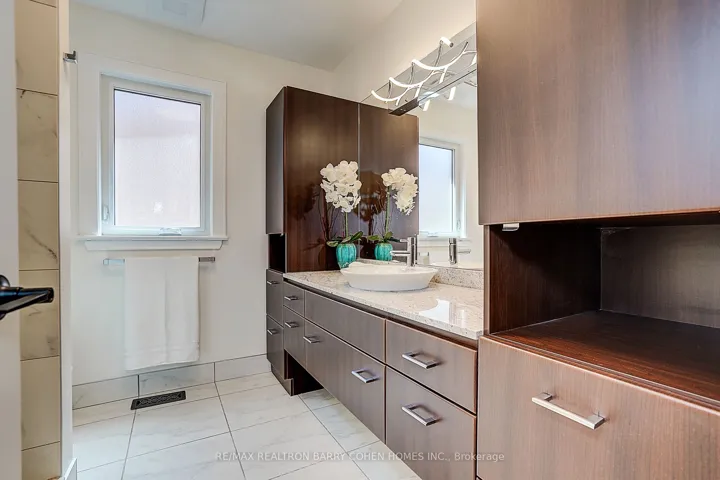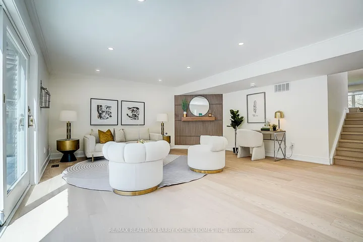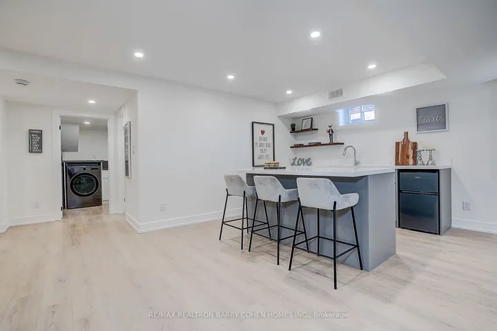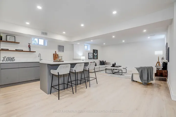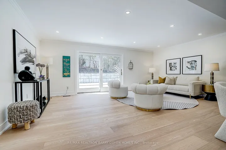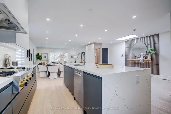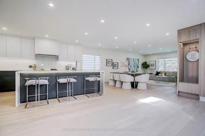 +"PublicRemarks": "Nestled on a quiet cul-de-sac in sought-after St. Andrew-Windfields, this beautiful fully renovated home offers 4 spacious bedrooms, 5 bathrooms, and a 2-car garage, with a desirable west-facing backyard providing excellent privacy and comfort.Thoughtfully redesigned, the home features a functional layout with bright principal rooms and elegant finishes throughout. The open-concept gourmet kitchen and living area is ideal for modern living and entertaining, showcasing premium quartz countertops & backsplash, an oversized waterfall island, custom-designed cabinetry, brand-new appliances, and a skylight that brings in abundant natural light.The primary retreat boasts a 5-piece ensuite and walk-in closet. The family room offers seamless indoor-outdoor living with a walk-out to the landscaped backyard. The walk-out lower level adds versatile living space, perfect for entertaining or extended family use.Extensive upgrades include engineered hardwood flooring and smooth ceilings throughout, new pot lights, new interior doors, most windows replaced, new front door, new washer & dryer, newer furnace (2023), upgraded electrical system (ESA approved), new roof & roof vents, new attic insulation, and newly landscaped front and backyard.The finished basement features a spacious recreation area with a designer wet bar complete with quartz countertops, custom cabinetry, large center island, and mini fridge.Ideally located within top-ranked school districts-Dunlace P.S., Windfields M.S., and York Mills C.I.-and just minutes to prestigious private schools including Crescent, TFS, Havergal, and Bayview Glen. Close to parks, shops, transit, and Hwy 401.A move-in ready home offering exceptional value in one of Toronto's most prestigious neighbourhoods."