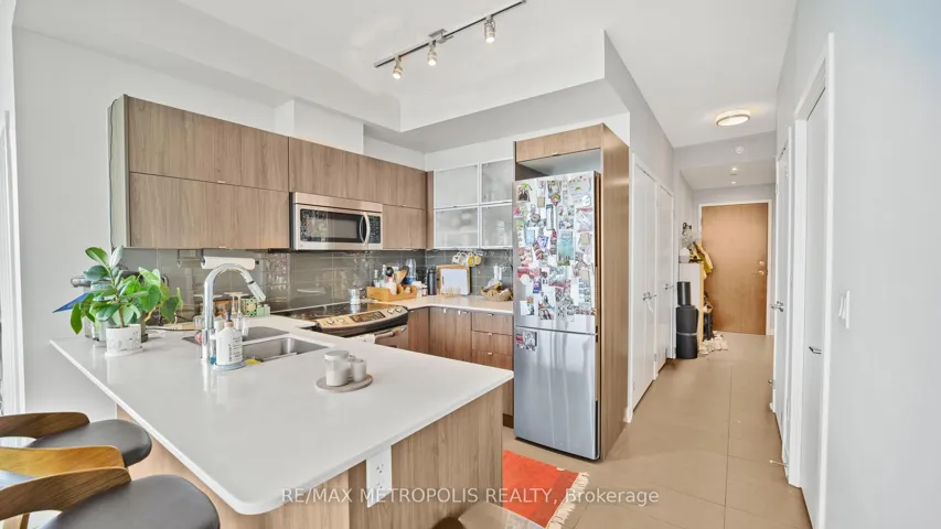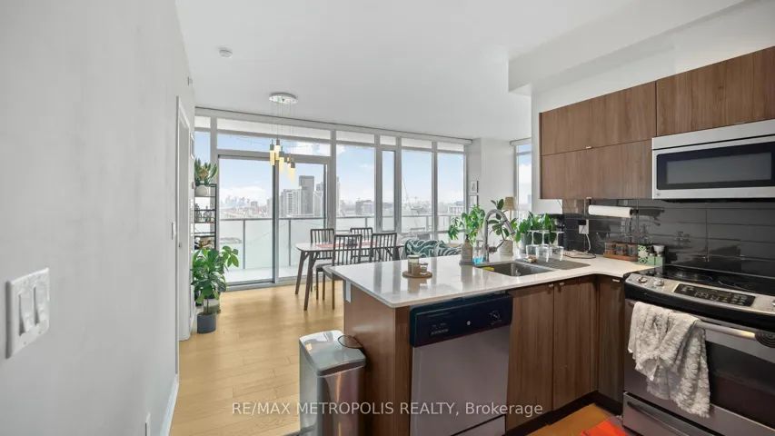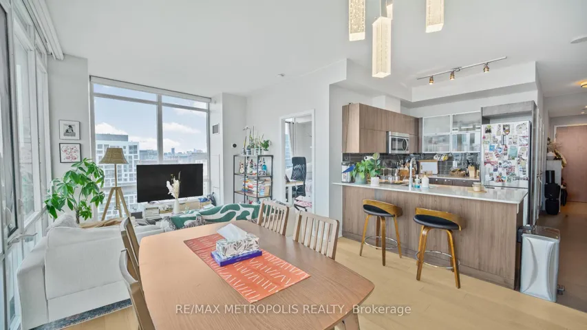 +"PublicRemarks": "Step into refined waterfront living in this sun-drenched northwest-facing corner residence, featuring a rare full-width private terrace. Thoughtfully designed, this 2-bedroom split layout offers the perfect balance of privacy and sophistication, with an airy open-concept living space framed by floor-to-ceiling windows.The sleek, modern kitchen is equipped with a breakfast bar and exceptional storage, and 2 pantries! Spa-inspired bathrooms elevate everyday living with a glass-enclosed walk-in shower and deep soaker tub, while smart home features, including Google Nest thermostats and upgraded designer lighting, add comfort and convenience. Brand new washer & dryer complete this fully upgraded, turnkey suite. Parking included. Located right next to Toronto Public Library and just steps to the Waterfront, Martin Goodman Trail, King West's top restaurants and boutiques, premier schools, and community amenities, with seamless access to the DVP. A rare corner offering that blends lifestyle, luxury, and location-this is one you don't want to miss."