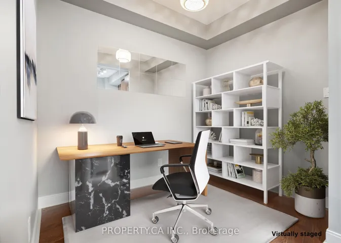 +"PublicRemarks": "Welcome to London On The Esplanade, a chic boutique building steps to the Financial District! Nestled in a tranquil setting with views of a tree-filled courtyard, this immaculate 680 sq.ft. suite offers efficient, fully usable space. The spacious dining/den area easily accommodates two workstations, perfect for a home office setup. High-end finishes include oak flooring, 9-ft ceilings, and a chefs kitchen with an island and a large wall oven. The oversized laundry room provides ample storage for bikes and toys. Located on a low floor with quick access via stairs or fast elevators, you're just minutes from the vibrant St. Lawrence Market area. The unbeatable downtown location is only 2 minutes to the underground PATH. Enjoy exceptional building amenities such as 24-hour concierge service, a stylish pool, hot tub, guest suite, expansive gym with free weights, library, and BBQ terrace."