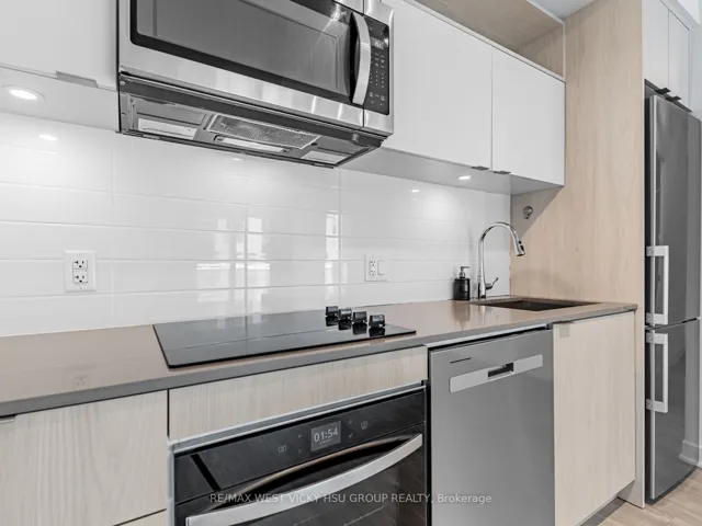 +"PublicRemarks": "Spacious west facing 1 bedroom suite with unobstructed views, an exceptional layout, and over 750 sqft of living area. Featuring a large modern kitchen with stainless steel appliances, expansive countertops, and a generous breakfast bar perfect for dining and entertaining. The open-concept living area is bright and inviting with large windows and plenty of natural light. The oversized bedroom easily accommodates a King bed, includes a large closet with built-in shelving, and a custom built-in makeup area with wardrobe, display shelving, and desk. Enjoy a stylish bathroom with large glass shower and ample counter space. Conveniently located close to restaurants, supermarkets, Eglinton GO, TTC, Kennedy Station, New Eglinton Crosstown LRT, STC. Includes 1 parking space and 1 locker for added convenience. A great opportunity for first-time buyers, small families, or down-sizers. Don't miss this chance to call it your home!"