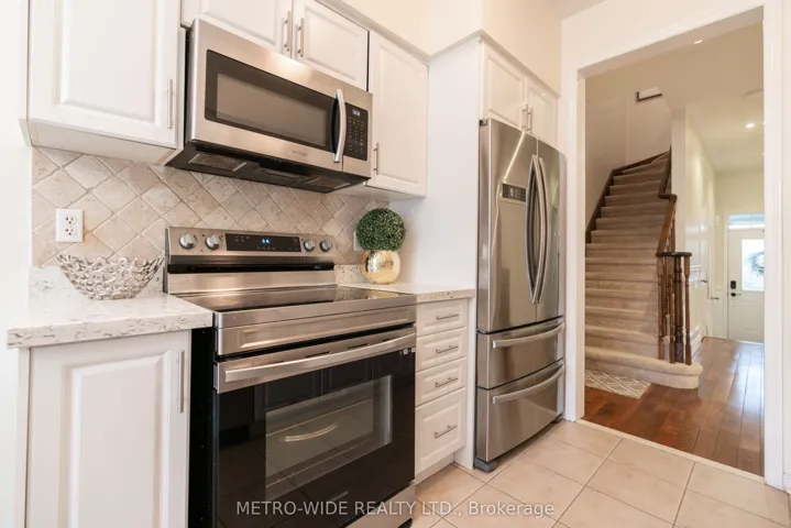 +"PublicRemarks": "Welcome to Fully Upgraded Freehold Townhome on a quiet street in Demand Central East Ajax. Newer Kitchen with Quartz counter, Newer Appliances and Large Brakefast area. Hardwood Flooring, 9ft.Ceilling on the main floor. Beautiful Wainscotting adds charm and style. Pot lights all thru out the Main floor. All Bedrooms are spacious, Prime Bedroom has walk-in closet and 4pc. Ensuite.Professionally Finished Rec. Room with Gas Fireplace in the Basement. R/I in for additional bath and lots of space for storage or additional room in the Basement. Minutes to Go & DRT, Hwy 401, Shopping and Top Rated Shools. Professionally Landscaped Front and Backyard. Don't miss this Great opportunity, especially for the First Time Buyers."
