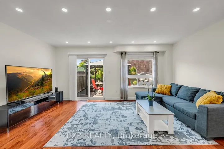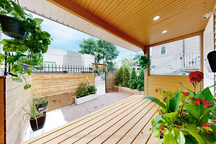 +"PublicRemarks": "Executive semi-detached with a fully paved back yard, deck & cedar-stained fencing. Step inside from a fiberglass-stained insulated door to a French style decorative wrought iron post and steel picket staircase with a coffered ceiling underneath. A grandiose 5ft linear gas fireplace with a dreamy sintered smooth stone finish and custom vented cabinetry. 9-in Crown mouldings, 8-in baseboards, architraves, & solid-core designer doors w/Emtek handles. Triple paned windows t/o, 90-in glass double doors in kitchen leads to a power room and den with a 10-ft 4-panel sliding door walk-out to your deck w/powered retractable awning, paved yard and gazebo perfect for hosting & tranquility. Open concept basement with large built-ins for shoes & additional closets perfect for coats etc. Contemporary laundry & 3-piece bath. In-wall surround speaker wires in family room & basement. Tech: 200-amp service/panel w/whole home surge protection, ethernet in den to family room for routing, smart thermostat, smart water softener, select smart switches, Nest protect and Nest doorbell. New range w/air fryer and fridge w/craft ice, undercounter beverage fridge in island. Massive renovations involved structural openings, electrical, HVAC, new roofing, siding, spray foam insulation, sound/fireproofing, plumbing and land/hardscaping to the finishes you see took up to 20 bins of demo/reno. TTC streetcar literally around the corner which takes 25min. to Union Station in rush hour."