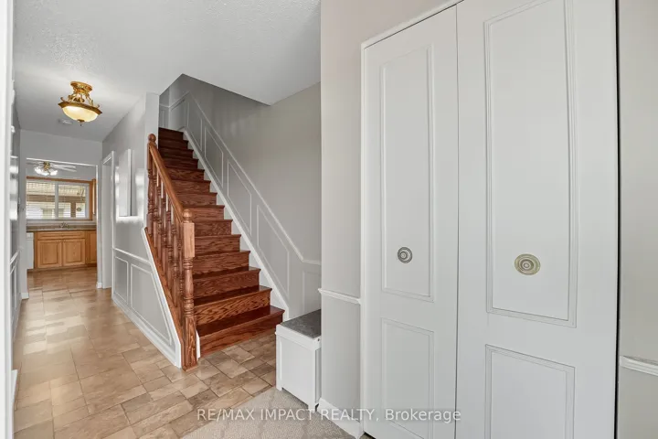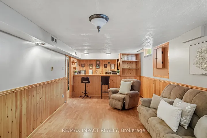 +"PublicRemarks": "Welcome to this beautifully maintained three-bedroom, two-bathroom semi-detached home, perfectly set on a quiet, family-friendly street just steps from lakefront trails, parks, schools, shopping, transit, and Highway 401. The bright and inviting main floor offers a seamless flow, with a spacious living and dining area that's ideal for both everyday living and entertaining. The kitchen overlooks the private, fully fenced backyard, with a covered deck, large shed, and well-kept gardens. Upstairs, three generous bedrooms are filled with natural light, creating a warm and comfortable retreat for the whole family. The finished basement adds valuable living space with a cozy recreation room with a custom built-in bar, a convenient two-piece bathroom, and a large laundry and storage area to keep everything organized. The private double driveway has room for five vehicles, leading to a well-built storage building. There is no sidewalk to maintain or to prevent vehicles from fitting. Thoughtfully landscaped and boasting wonderful curb appeal, this home has been lovingly cared for and is truly move-in ready. Combining charm, functionality, and an unbeatable location, it's the perfect opportunity to settle into a welcoming community. New shingles 2023, furnace and AC 2021."