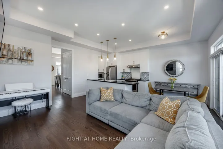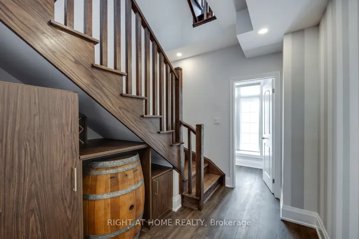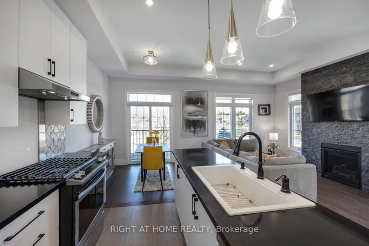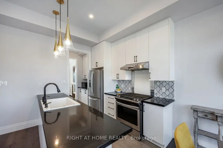 +"PublicRemarks": "Welcome to 14 Seagrave Lane, a bright corner 3-storey semi-detached home spanning 2,315 sq.ft. Exquisitely decorated and thoughtfully upgraded, this home offers 3 spacious bedrooms, a versatile den, 4 bathrooms, and a dedicated home office nook, with sweeping panoramic views of the ravine and pond. Enjoy hardwood flooring, quartz countertops, extended upper kitchen cabinets with pantry, and tall upgraded extended doors throughout. Soaring 10-ft ceilings and upgraded 7" trim create an upscale atmosphere, while the gas fireplace with a stunning stone accent wall brings warmth and sophistication. Designed with both comfort and convenience, the home features pot lights throughout and a walkout to a beautifully landscaped yard with new interlocking stone patio (2024) Smart storage solutions include a custom coat and shoe organization area, craft cupboard with adjustable shelving, and custom closets in every bedroom. Additional upgrades include custom built-in wine rack with barrel display and modern ceiling fans. All of this in a prime location, just minutes from top-rated schools, parks, shopping, amenities and quick access to Highways 401, 407 and 412. Visitor parking spots available for guests!"