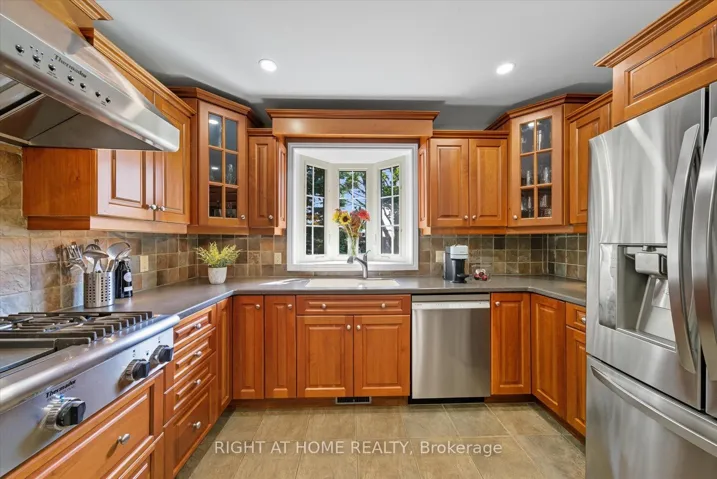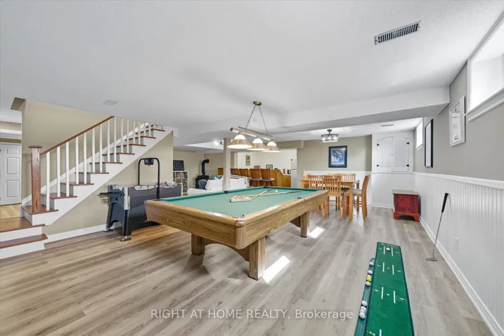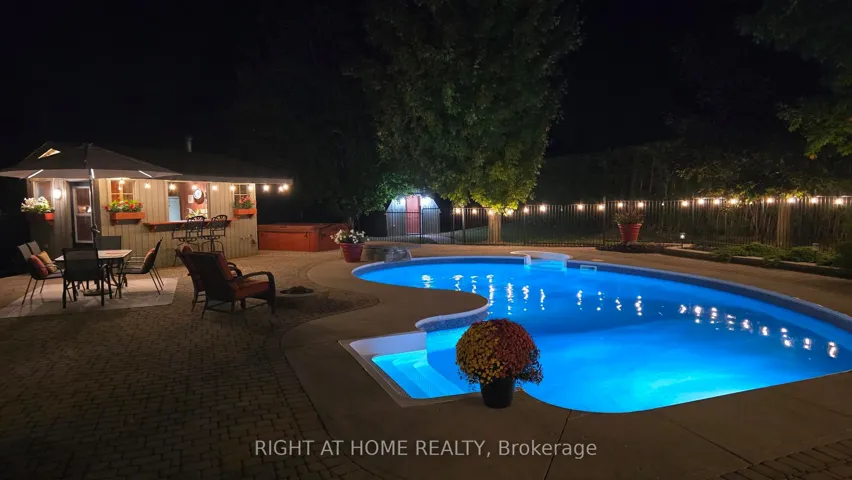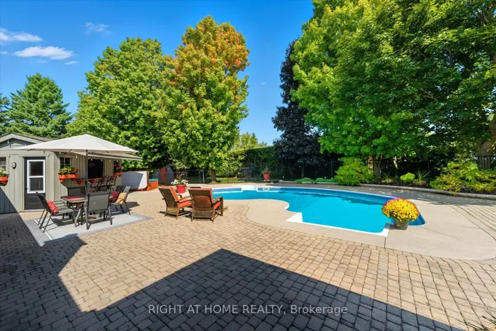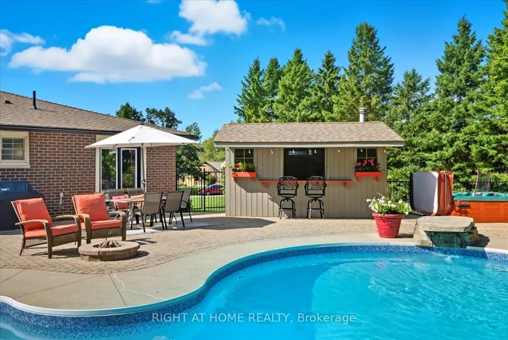 +"PublicRemarks": "This beautiful all-brick bungalow offers over 3,000 sq. ft. of finished living space on a rare, in town treed 0.63-acre lot that provides both privacy and charm in one of Port Perrys most desirable mature neighbourhoods. Perfectly located on a quiet cul-de-sac within walking distance to historical down town, schools, shopping, parks, the waterfront and the marina. This home combines convenience with lifestyle. A large inviting front porch welcomes you with charm and curb appeal. The bright, open-concept main floor features a custom kitchen with abundant cabinetry, built-in stainless steel appliances, double and prep sinks, and a breakfast bar. It flows seamlessly into a spacious dining room with a walkout to the pool and a sunken family room overlooking the backyard, complete with a cozy gas fireplace. A generously sized separate living room with a large front-facing window adds extra space for family gatherings or quiet relaxation. Three bedrooms and two full bathrooms, including a primary suite with ensuite bath and direct walkout to the pool area plus a main floor laundry complete the main floor. The fully finished basement expands the living space with a large rec room featuring a pool table, a sitting area with a natural gas fireplace, a wet bar, a separate gym area, plenty of storage, an additional bedroom, and a 3-piece bath and a new walk in closet for extra wardrobe or storage space. A convenient side entrance through the garage leads directly to the basement. The backyard is an entertainer's dream and true private oasis. Highlights include a 36-ft humpback pool with two swim-outs, a rock-style diving board with waterfall, a brand-new liner (2024), and hot tub. The 8x16 Western Red Cedar cabana features a 2-piece bathroom, an additional sink, natural gas hookup, and a second gas hook up for the BBQ. The pool area is secured with wrought iron fencing, while a separate garden shed with hydro provides extra storage. Large lot with no sidewalks."