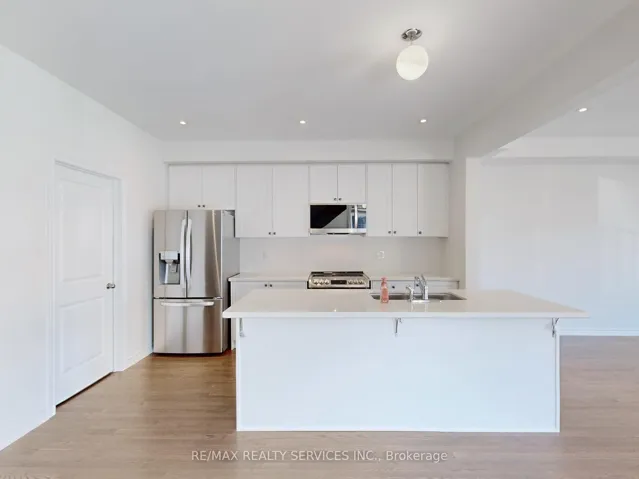 +"PublicRemarks": "Welcome to this stylish end-unit townhouse in Ajax, offering the sought-after Fieldgate Homes Kingley model with 1,705 sq. ft., 3 bedrooms, 3 bathrooms, and a versatile flex space. Perfectly situated near Salem Road, Hwy 401, Bayly Street, top schools, shopping, dining, and everyday amenities, this location is ideal for convenience and lifestyle. This corner unit, with no neighbor on one side, enjoys an abundance of natural light and the feel of a semi-detached. A single-car garage, private covered driveway, and low-maintenance exterior make living here easy year-round. Step through the double-door entry into a welcoming foyer with a flexible space perfect for a home office or study nook. The main floor features an open-concept layout with hardwood floors, a bright living and dining area with walkout to a large balcony, and a modern kitchen with an oversized island, breakfast bar, Eat-In Area and stainless steel appliances. A convenient powder room and laundry with upgraded front-loading washer/dryer complete this level. The upper level hosts three spacious bedrooms and two full bathrooms. The primary suite offers his & hers closets, its own balcony, and a private ensuite with a glass shower. The unfinished basement provides excellent potential for additional rec space or storage. Set in a quiet, family-friendly neighborhood with easy access to transit, highways, and recreation, this home combines comfort, convenience, and modern style."