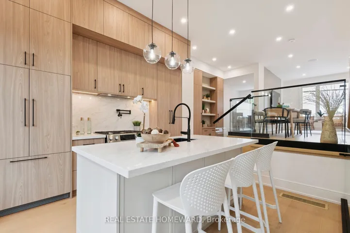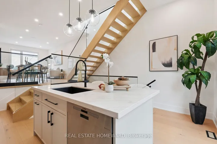+"PublicRemarks": "Welcome to this stunning home located in the heart of East York. This 3-bedroom, 3-bathroom detached home offers modern elegance, functionality, and comfort across two thoughtfully designed stories. Step inside to find an open-concept layout filled with natural light, soaring ceilings, and stylish finishes. The gourmet kitchen features sleek cabinetry, quartz countertops, stainless steel appliances, and a spacious island perfect for both cooking and entertaining. The living and dining areas flow seamlessly, creating an inviting atmosphere for gatherings. Upstairs, you'll find the three bedrooms, including a serene primary suite with ample closet space and a beautifully appointed ensuite. Each bathroom features modish details and clean, modern designs. Enjoy the convenience of a built-in garage and private driveway offering parking for two vehicles. Outside, the contemporary exterior pairs beautifully with the landscaped front yard, creating a true curb appeal statement. This home is ideally situated just minutes from the Don Valley Parkway, making commuting a breeze. You're also steps away from scenic ravine trails, neighborhood parks, great schools and a variety of local shops, cafes, and amenities."