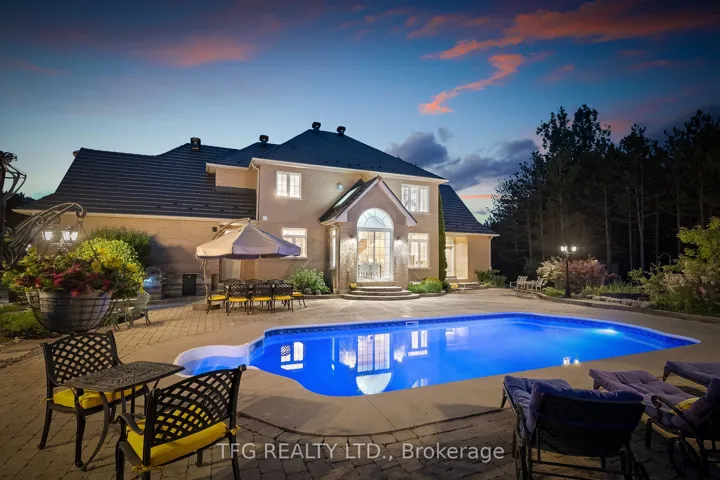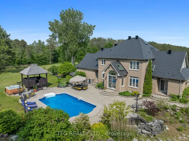 +"PublicRemarks": "Welcome to an extraordinary opportunity to own a truly one-of-a-kind estate where luxurious living and natural beauty converge---all just minutes from the city. Custom-built by the renowned Storybook Homes and proudly maintained by its original owner, this five-bedroom residence is set on sixty acres of pristine, wooded land in Clarington, offering unparalleled peace, privacy, and distinction---with potential to create a family compound for generations to come. A stately gated entrance leads to a thoughtfully designed home that blends timeless architecture with modern comfort. Expansive, open-concept living spaces are filled with natural light, enhanced by soaring ceilings and large windows that frame picturesque views of the surrounding landscape. Quality craftsmanship and refined details are evident throughout, including an elegant steel roof with a lifetime warranty--- offering both beauty protection. Outdoors, your private oasis awaits... Spend warm days beside the sparkling in-ground pool, recently updated with a new liner, or unwind beneath your imported hand-carved tiki hut. A hot tub, outdoor kitchen, and flourishing perennial gardens elevate the space for both everyday enjoyment and memorable entertaining. Winding trails weave through the property, ideal for scenic walks or ATV rides. Though immersed in nature, the home remains conveniently close to amenities---just fourteen minutes from Costco, minutes to Highway 407 via Harmony or Brock Road, and a short drive to the 401. Families will value the school bus pickup right at the end of the driveway. Additional highlights include a triple-car garage, a paved private road for year-round access, skylights throughout, and high-speed Bell Fiber internet---perfect for remote work or multi-generational living. Offering a rare combination of serenity, sophistication, and accessibility, this exceptional estate is not just a home---it is a legacy in the making."