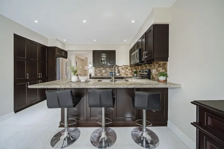 +"PublicRemarks": "Absolutely gorgeous Executive TURN KEY townhome in a superb location! Take a Walk from the subway into this beautiful home with soaring high 9 ft ceilings, and beautiful crown moulding throughout the main floor. Tons of natural light! Freshly painted! The living room includes hardwood floors, a smart thermostat, and a cozy gas fireplace perfect for entertaining or relaxing! The stunning newly renovated kitchen offers a breakfast bar, ample cabinetry, top-of-the-line stainless steel appliances, a granite countertop, and a walkout to the most lovely private deck! The deck also comes with a gas BBQ hook-up to make entertainment effortless. This home is impeccably kept and clean as a whistle! Walk upstairs to the second floor to find a spacious bedroom, a three-piece bathroom, and a family room that can be used as an office area, a media room, or a guest room. On the third floor, you will find your very own private primary oasis with a 2nd balcony to enjoy the sunsets, and a luxuriously renovated master ensuite with a large soaker tub. The oversized garage also comes with a lot of storage. This is a fantastic and highly sought-after neighbourhood surrounded by multi-million dollar homes! Walking distance to many shops, amenities, the TTC and GO stations, and to some of the best schools in Etobicoke, including Wedgewood Junior School. We look forward to helping you to call this home!!"