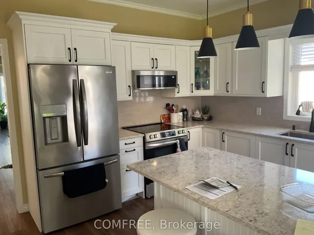 +"PublicRemarks": "Completely renovated 2 bedroom 2 bathroom bungalow in an Adult lifestyle Community. Upgraded kitchen with large island and coffee station with quartz countertops. 5 new appliances. House is heated with in floor heating with large on demand water system. 2 updated bathrooms with new vanities and fixtures. Complete landscaping with interlock back and front, extensive gardens. Backyard is private and has large pergola with interlock patio over looking the gardens. Large garden shed which also holds golf cart. Single car garage with lots of storage. Maintenance fee includes water, snow removal and full use of facilities which include golf, tennis, pickle ball, horse shoes 2 pools, shuffle board , pool tables, darts, hot tubs, sauna, exercise room, entertainment every month, Pharmacy in club house as well as hair salon. Be as busy as you want."