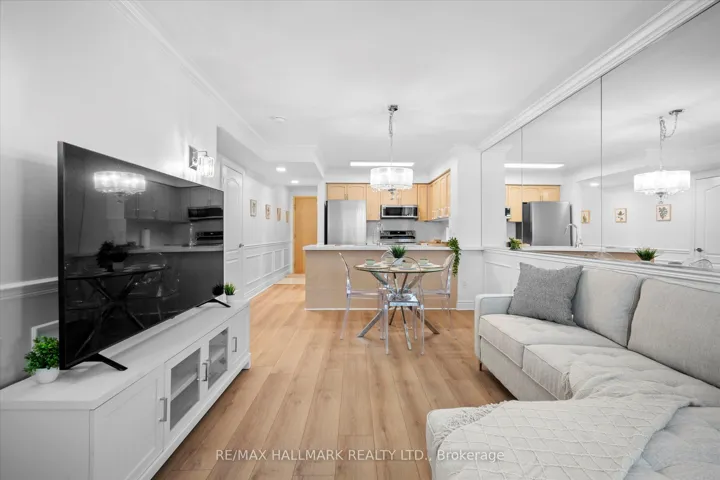 +"PublicRemarks": "Beautifully renovated 1+1 unit with parking, set right beside Scarborough Town Centre-one of the most connected and convenient hubs in the east end. This bright, spacious suite offers large windows, custom wainscoting, and crown molding throughout. The open-concept living and dining area extends into a versatile den that works well as a home office, nursery, reading nook, or extra storage space. King-sized bedroom includes a walk-in closet and opens to a cozy balcony with east and south-facing skyline views. With direct access to transit and just steps from Scarborough Town Centre, you're minutes from Highway 401, making this an ideal location for commuters or anyone who prefers vehicle-free living. Building amenities include a 24-hour concierge, indoor swimming pool, gym, mini theatre, sauna, party room, car wash station, and ample visitor parking. A solid opportunity in a highly accessible neighbourhood."