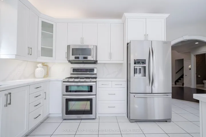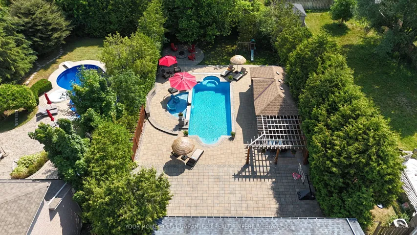 +"PublicRemarks": "Welcome to this remarkable custom-built home on prestigious Pine Grove, one of Pickering's most desirable streets. Set on an impressive 60 x 245 ft lot, this property offers exceptional space, privacy, and luxury throughout. The bright, sun-filled layout features hardwood floors, fresh paint, and two skylights, with an updated kitchen showcasing Caesarstone countertops and stainless steel appliances overlooking a cozy family room with custom built-ins and a fireplace. The primary suite offers a walk-out to the deck, a spa-inspired renovated ensuite, and a generous walk-in closet, complemented by main floor laundry and a rare 3-car garage. Step outside to your resort-style backyard oasis with two heated saltwater pools (installed approx. 7 years ago), a brand-new 2024 pool heater, inground sprinklers, and mature trees providing ultimate privacy. The fully finished basement with a separate entrance is perfect for in-laws, guests, or rental income, featuring a renovated kitchen with Caesarstone counters, two bedrooms, and a full bathroom. Additional features include a CCTV camera system, alarm, instant hot water, garburator, and two outdoor storage sheds. This one-of-a-kind property truly has it all-space, upgrades, luxury, and a prime Pickering location."