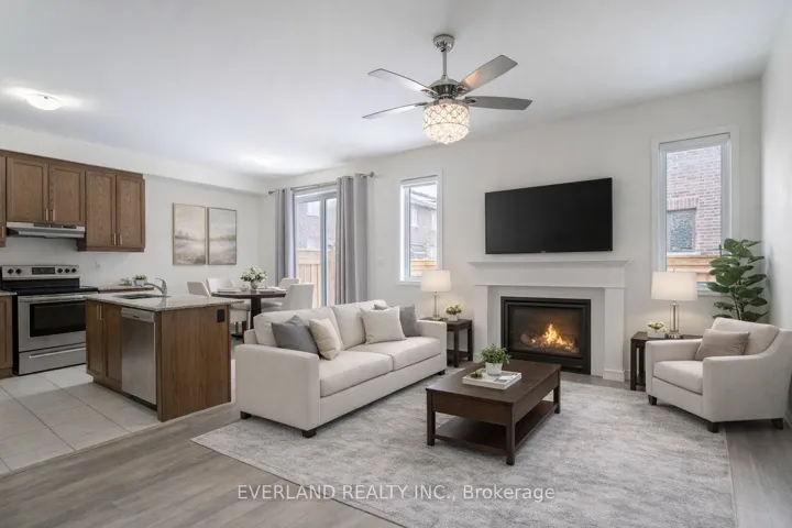 +"PublicRemarks": "Step into this elegant Mattamy-built new traditional 2 story townhome, offering over 2,000 square feet of bright, contemporary living space. The main floor features an open-concept living and dining area with 9-foot ceilings, creating a modern and airy atmosphere. A spacious breakfast area complements the stylish kitchen, complete with stainless steel appliances, sleek cabinetry, and ample counter space - ideal for everyday living and entertaining guests. The main floor also includes a full washroom, providing added comfort and convenience for family and visitors alike. fireplace make you feel more warm in winter . Upstairs, you'll find a conveniently located laundry area with washer and dryer, making household chores simple and efficient. Additional features include a central vacuum system and excellent transportation access, ensuring a perfect balance of comfort and practicality. Extra Deep Single Garage. Direct Access From The Garage To The House. Close To Hwy 407, Hwy 401, Go Station And Other Amenities. fully fenced backyard."