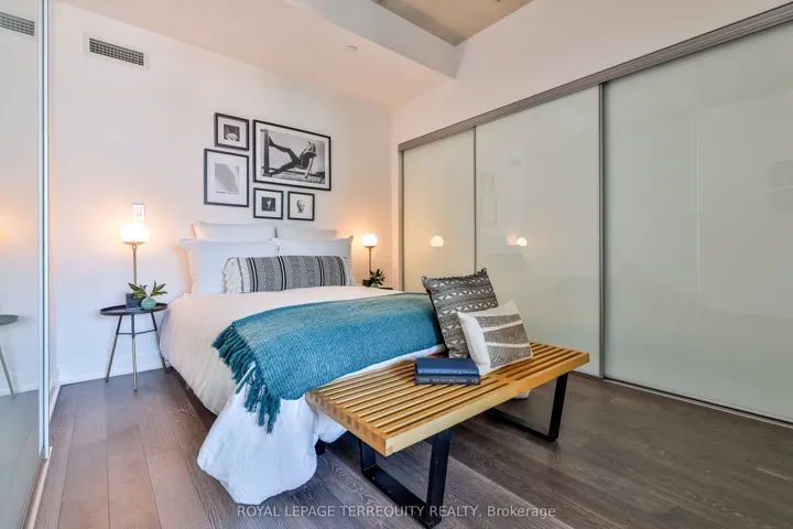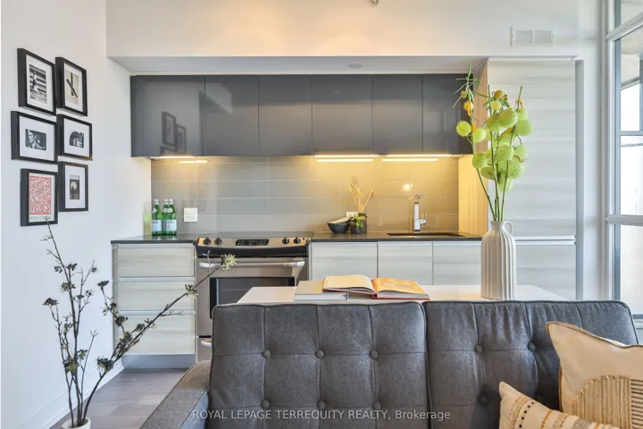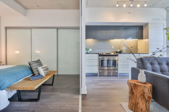 +"PublicRemarks": "Effortless city living starts here at The Carlaw. Bright, airy, and impeccably styled, this turn-key suite delivers smart design with a cool, confident edge. Small but mighty, the layout is clean and intentional - a contemporary kitchen, private bedroom, exposed concrete ceilings, crisp white walls, and floor-to-ceiling windows that flood the space with natural light. Add outdoor space and clever storage, and you have a home that looks good, lives well, and feels easy. A dedicated parking spot is included. Enjoy top-tier amenities including a full gym, guest suites, 24-hour concierge, and a rooftop terrace with communal BBQs and lounge space made for al fresco nights. Transit is seamless with streetcar access at your doorstep and a quick ride downtown, while easy connections to the Gardiner and DVP make getting in and out of the city effortless. Set in the heart of Leslieville, a former industrial pocket turned East End cultural hotspot, you're surrounded by the city's best everyday rituals. Morning coffee at Te Aro, brunch at Maha's or Lady Marmalade, dinner at Descendant Pizza or MARU Japanese Bistro, and rooftop drinks at The Broadview Hotel - all just steps from your door. Ideal for first-time buyers, pied-à-terre seekers, or savvy investors. This isn't just a condo - it's your next move."