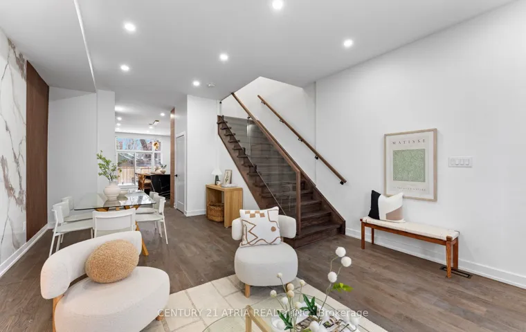 +"PublicRemarks": "A show-stopping new build that seamlessly blends modern luxury with stylish warmth in the heart of prime East York. Thoughtfully designed with 4+1 bedrooms, 4.5 bathrooms, and parking for two, this home offers exceptional style and everyday functionality. The living room, featuring a chic feature wall and sleek glass railing, sets an impressive tone and flows seamlessly into a gourmet kitchen with top-tier built-in appliances, elegant display cabinetry, and a sophisticated coffee and wine bar that doubles as an integrated workstation for the dining and family areas. A striking waterfall centre island anchors the heart of the home, ideal for entertaining or family gatherings, while large double sliding doors open to the deck, creating a seamless indoor-outdoor experience. Sunlight fills the home through expansive windows and skylights, highlighting the serene primary suite with its spa-like 4 piece ensuite and private balcony overlooking the picturesque backyard. 3 additional bedrooms feature generous windows and ample closet space, perfect for growing families or versatile flex use. Laundry on the second floor and basement. The lower level includes a bright in-law or potential income suite with separate entrance, full kitchen, and spacious living and dining areas, plus a private office or gym with its own full bathroom for exclusive upstairs use (separate from the apartment). Steps to TTC, 2 subway stations, GO train, parks, bike and hiking trails, schools, library, and just minutes to the beaches and downtown, this home truly checks every box in an unbeatable location."