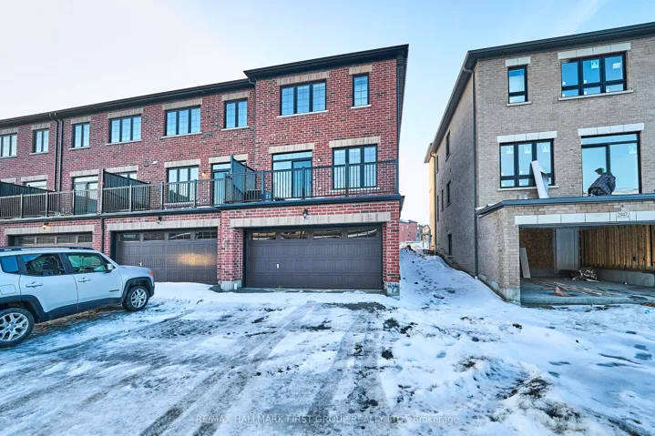 +"PublicRemarks": "Be the first to live in this stunning, brand new end unit townhouse located in an exciting, newly built neighbourhood in North Pickering, offering nearly 2,000 sq ft of stylish and functional living space with quick access to Highway 407 for effortless commuting. This beautifully crafted all-brick home showcases a modern kitchen with stainless steel appliances, elegant quartz countertops, and a breakfast bar that's perfect for casual meals or entertaining, all complemented by rich hardwood flooring throughout the main level & staircase. The sun-filled great room is a true showstopper, featuring a sleek electric fireplace and a walk-out to an impressively large balcony, creating the perfect indoor-outdoor living experience. The main floor also offers a spacious separate living and dining area and a convenient 2-piece bathroom, ideal for hosting family and friends. Upstairs, you'll find four generously sized bedrooms, including a private primary retreat complete with a walk-in closet and a spa-inspired 3-piece ensuite with a walk-in shower, while a modern 4-piece bathroom serves the additional bedrooms. With parking for four cars and direct 2 car garage access into the home, this exceptional lease combines comfort, style, and location in one of North Pickering's most desirable new communities."