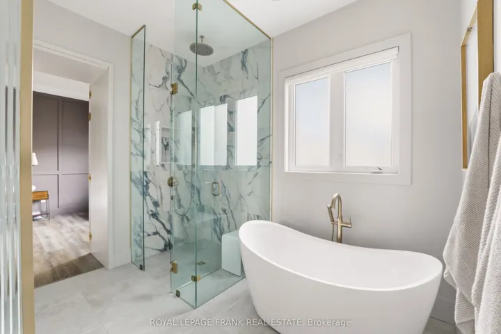 +"PublicRemarks": "Welcome to an extraordinary custom-built estate offering over 4,000 square feet of luxurious living space on a meticulously landscaped 1.35-acre lot. Originally built in 2018 and enhanced with hundreds of thousands in recent high-end renovations, this home is a flawless blend of sophistication, comfort, and modern design. From the moment you arrive, you'll be captivated by the grand covered porch, new fluted glass entryway, and stunning curb appeal. Inside, soaring vaulted and coffered ceilings, detailed crown moulding, and expansive floor-to-ceiling windows fill the home with light and elegance. The main floor showcases a modern luxury kitchen complete with a massive center island, wall oven, cooktop, pot filler, and coffee bar, all overlooking the serene, private backyard and greenspace beyond. The open-concept living area features a gas fireplace surrounded by custom built-ins and integrated speakers, perfect for entertaining or relaxing. Two main-floor primary sites each offer walk-in closets and spa like en-suites, with the main primary featuring built-in cabinetry, a lavish dressing room, and a magazine-worthy 5-piece ensuite with heated floors and a built-in speaker system. The windows, a four-piece bathroom with heated floors, a theatre room with surround sound and entertainment zones with beautifully landscaped patio featuring a built-in gas fireplace and heated spa pool with waterfall, a putting green, and a grass area enclosed by a high-quality vinyl fence (+/-$70K). Beyond the fenced area is an extra-wide green space with forest. Additional highlights include a luxury laundry/mudroom with quartz counters and custom cabinetry, indoor/outdoor speakers, 200-amp electrical, HRV humidifier, security system with cameras, and a tankless water heater. Conveniently located near all amenities and highways with easy access to Toronto and the airport, this exceptional property offers the perfect balance of luxury, privacy, and convenience."