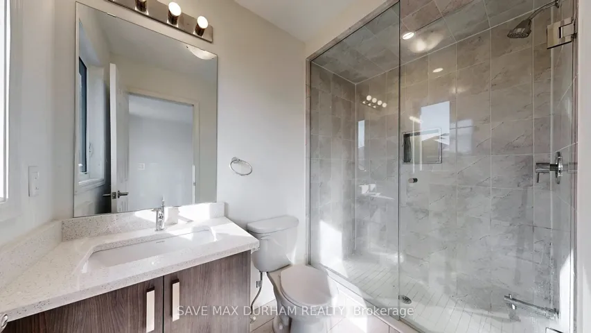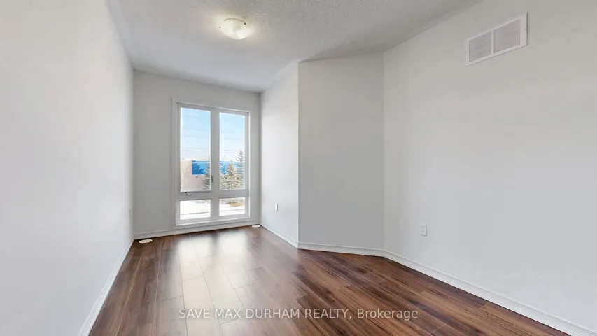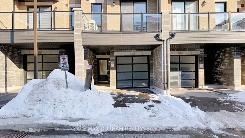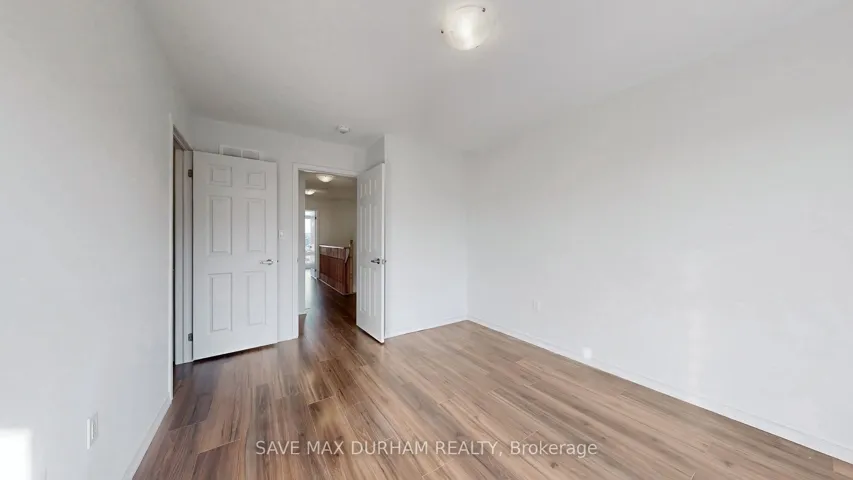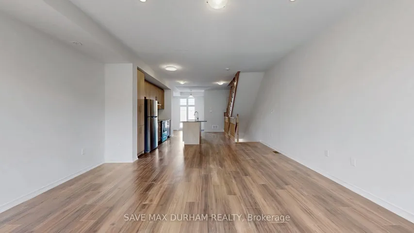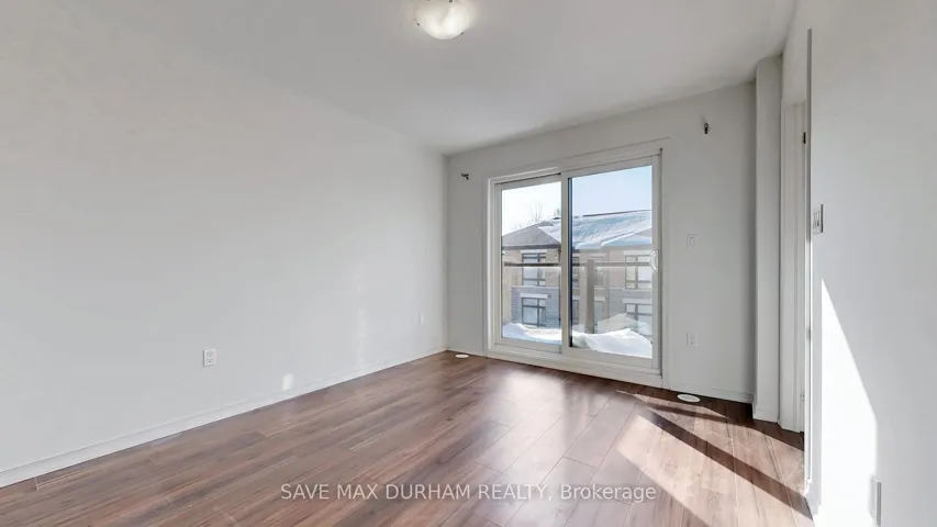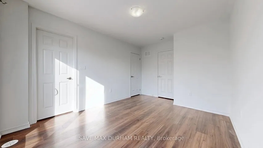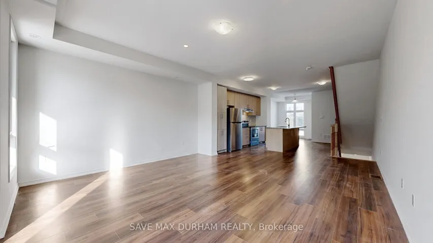 +"PublicRemarks": "This modern 3-bedroom, 3-bathroom freehold townhouse is located in a family-friendly Oshawa neighbourhood and features numerous upgrades. Offering two separate entrances, a main-level den/office, and a bright open-concept second floor with high ceilings, stainless steel appliances, and an eat-in kitchen. Upgrades include full laminate flooring throughout, stained wood stairs, a glass shower, and a central vacuum. The living room walks out to a private balcony, perfect for entertaining. The third level offers three well-sized bedrooms, including a primary with a walk-in closet and a 3-piece ensuite. Close to schools, shopping, transit, parks, and everyday amenities-ideal for first-time buyers or growing families."