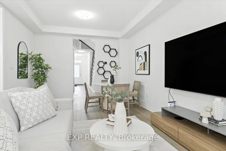 +"PublicRemarks": "Welcome to this beautifully upgraded 3-spacious bedroom, 3-bathroom townhouse offering approximately 1,800 sq ft of modern living space. Featuring 9 ceilings on the main floor and 8 ceilings on the second floor, this home boasts an open-concept layout with a spacious living/dining area and a bright kitchen complete with a center island, 3 cm quartz countertops, tall cabinets, backsplash, and stainless steel appliances. The primary suite offers a generous 17x12 layout with a walk-in closet and a luxurious ensuite featuring a glass shower, bath oasis, and upgraded fixtures. The 2nd bedroom also includes its own walk-in closet, providing plenty of storage space. Additional highlights include 5 red oak hardwood floors throughout, oak stairs, 12x24 Olympia tiles, Riverside doors, California shutters, Ecobee smart thermostat, and keyless garage entry. The lower level comes with a rec room ready package, 3-piece rough-in, and oversized windows perfect for future customization. Enjoy peace of mind with an owned tankless water heater, upgraded appliances, central air conditioning, garage opener, and a newly fenced backyard with warranty. With over $50,000 in upgrades, this move-in ready home blends style, comfort, and functionality perfect for modern family living."
