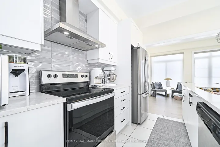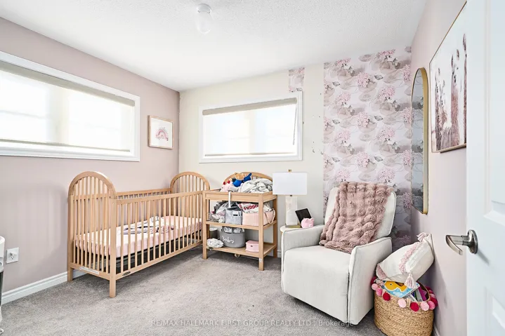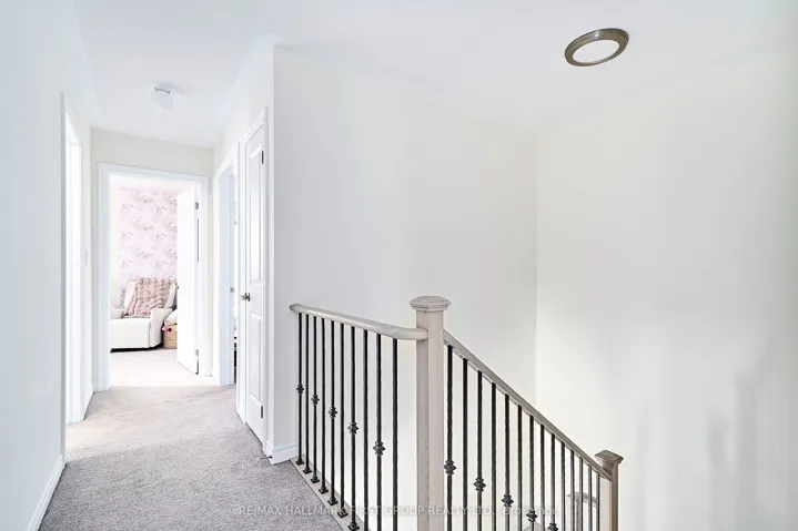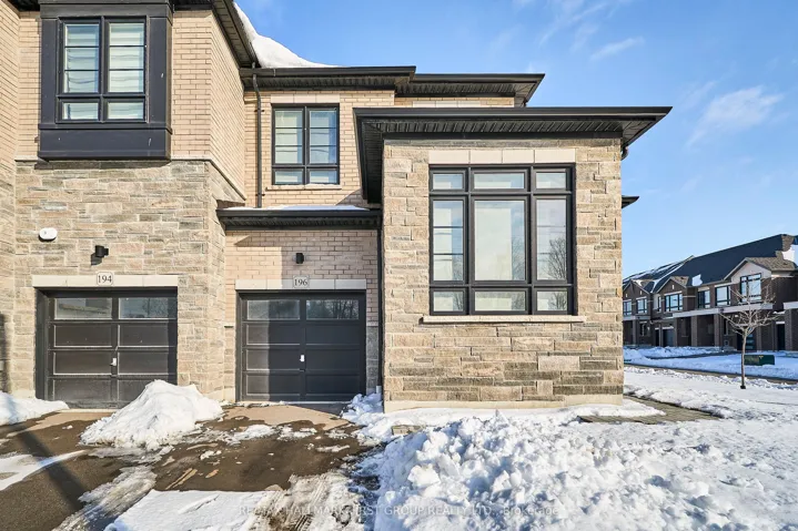 +"PublicRemarks": "Stunning 4-bedroom end-unit townhouse offering just over 2,100 sq ft of thoughtfully designed living space, filled with an abundance of natural light from expansive floor-to-ceiling windows throughout the home. The main floor features beautiful light hardwood flooring, 9-foot ceilings, a convenient 2-piece bathroom, and a private office with wraparound floor-to-ceiling windows, ideal for working from home. The modern kitchen is equipped with stainless steel appliances, quartz countertops, and a breakfast bar, seamlessly flowing into the family room with an inviting electric fireplace and walkout to the backyard. The upper level offers a spacious primary bedroom with a walk-in closet and a luxurious 4-piece ensuite featuring a soaker tub and glass walk-in shower, along with three additional well-sized bedrooms serviced by a full 4-piece bathroom. A separate upper-level laundry room with an additional sink adds everyday convenience. Direct access from the garage into the home and an unfinished basement suitable for use as a recreation room complete the space. Ideally located with easy access to schools, shopping, and major 400-series highways, this home is perfect for families seeking comfort, style, and convenience."