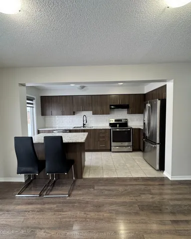 +"PublicRemarks": "Welcome to the brand-new Thompson End. A luxury, traditional 2-storey end unit townhouse situated on a rare oversized lot with approximately 150 ft of depth. Offering exceptional outdoor space and privacy. Located in the highly desirable Seaton community in Pickering. This home provides outstanding convenience, just minutes to Highway 407, GO Station (close enough to avoid parking congestion), parks, shopping centres, and all essential amenities.This beautifully designed 4 bedroom, 3 bath residence is loaded with upgrades throughout. It features high ceilings and large windows, creating a bright and airy interior filled with natural light. Modern laminate flooring throughout with no carpet enhances both style and low maintenance living. The functional open concept layout is ideal for modern lifestyles. The upgraded kitchen offers brand new stainless steel appliances, overhead microwave, a spacious breakfast island, and ample cabinetry, seamlessly overlooking the generous living and dining areas, perfect for entertaining .A rare opportunity to live in a stylish, move-in ready home in a thriving new community. This property truly checks all the boxes for comfort, location, and modern design."