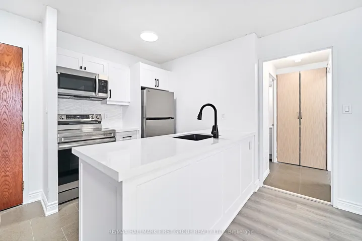 +"PublicRemarks": "Welcome to this beautifully updated 1 bedroom plus den condo apartment offering modern finishes and exceptional convenience. The unit features a brand new kitchen with quartz countertops and new stainless steel appliances, complemented by new vinyl flooring throughout and freshly painted interiors for a bright, contemporary feel. The versatile den is perfect for a home office or additional living space. Includes 1 underground parking space and a locker. All utilities are included for added value and ease. Ideally located within walking distance to parks, Pickering Town Centre, shopping, and restaurants, with Pickering GO Station nearby and just a 1-minute drive to Highway 401 for effortless commuting."