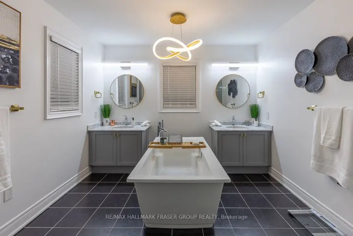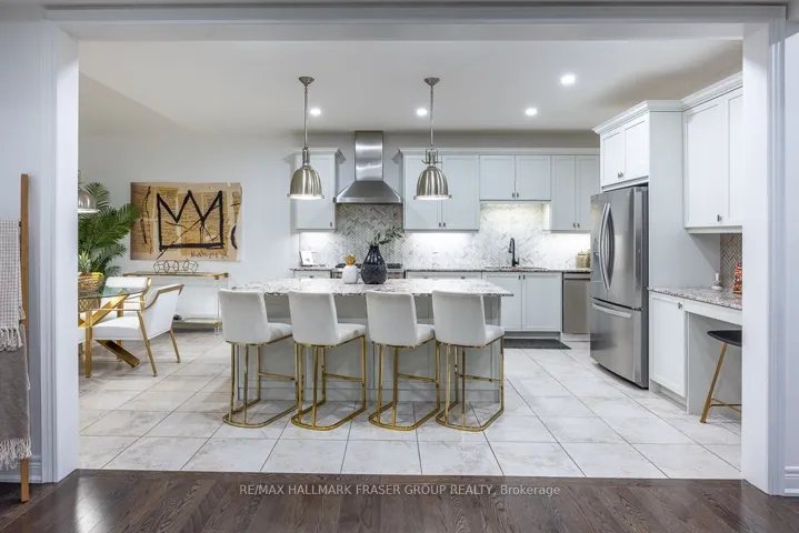 +"PublicRemarks": "Showcasing one of Highmark's most coveted models, this executive residence is part of Orchard Estates- an exclusive enclave of luxury homes in Whitby's prestigious north end and a highlight of the Majestic Estate Collection approx 3500 sq ft. Tucked on a private cul-de-sac within a distinguished community of professionals, the home makes a striking first impression with manicured gardens and stone interlock framing its elegant facade. A grand double-door entry opens to soaring 9-ft ceilings, gleaming hardwood floors, and ambient LED lighting that set an inviting tone throughout. The designer gourmet kitchen is a true showpiece with granite counters, herringbone backsplash, extended cabinetry, a centre island, chefs desk, and butlers pantry seamlessly connected to the formal dining room beneath an elegant waffle ceiling. The bright breakfast area offers a walkout to the backyard, while the expansive family room impresses with a gas fireplace, pot lights, and a coffered ceiling. A separate living room adds timeless sophistication, completing the open-concept main floor. Upstairs, the primary suite provides a spa-inspired retreat with an air-jet tub, frameless glass shower, dual vanities, and custom walk-in closets. Each additional bedroom is generously sized larger than those in many comparable models with its own ensuite or semi-ensuite, paired with an upper-level office/loft space for modern living. Smart home upgrades include integrated interior/exterior lighting, pre-wired ethernet, central vacuum, 200-AMP electrical service, and a Wi-Fi enabled sprinkler system. Outdoors, the landscaped backyard is a private oasis, anchored by a stunning custom-built gazebo with power, fan, and lighting. Minutes from top-rated schools (Sinclair SS & Robert Munsch PS), parks, shopping, & Hwy 401/407, & just east of Glenayr Park, Fender Park, and Heber Down Conservation Area, & 15 mins from Whitby Go Stn., this home is a rare offering in one of Whitby's most desirable communities."