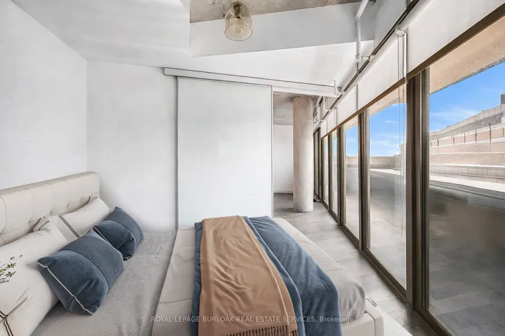 +"PublicRemarks": "Welcome to Suite 902 at the Flat Iron Lofts, where modern design meets the vibrant charm of Leslieville. This bright 1bedroom plus den, 1-bath corner suite features a smart, open-concept layout ideal for professionals or couples. Floor-to-ceiling, south-facing windows flood the space with natural light throughout the day. Exposed concrete ceilings, wide-plank hardwood floors, and sleek finishes blend industrial character with contemporary style. The modern kitchen offers full-sized stainless steel appliances, stone countertops, and generous storage-perfect for everyday living or entertaining. A standout feature is the expansive private terrace with gas BBQ hookup, offering a seamless extension of the living space. Enjoy city views and stunning downtown sunsets, whether hosting friends or unwinding at the end of the day. Residents also have access to a rooftop terrace with panoramic skyline views. Steps to parks, transit, and Leslieville's best cafés, shops, and restaurants along Queen East and Gerrard. Suite 902 is more than a condo-it's a lifestyle."