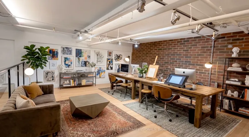 +"PublicRemarks": "Exceptional commercial studio opportunity within the iconic i-Zone Condos, one of Toronto's most established and creative industrial conversions. This I1-zoned, commercial unit offers an inspiring environment for a wide range of permitted uses including artist studio, photography and film studio, music and sound production, content creation, influencer and social media studio, marketing or design office, beauty boutique, hair, makeup or nail studio and other creative or light industrial uses (buyer to verify permitted uses).The space features classic industrial character with soaring 17-foot ceiling height, exposed brick elements, and durable concrete flooring, creating an authentic warehouse aesthetic ideal for creative production and client-facing businesses. Double door access and shared use of two truck-level loading docks provide excellent functionality for filming equipment, product distribution, installations, or studio build-outs. Located within a professionally managed building offering secure entry, security cameras, and access to a large multi-purpose meeting room with rooftop deck, this unit benefits from strong infrastructure and a vibrant creative community. Excellent transit access with nearby TTC bus and streetcar routes, and quick connectivity to the DVP, Gardiner Expressway, and Lakeshore Boulevard. Situated in the heart of South Riverdale / Leslieville, surrounded by cafes, restaurants, banks, shops, and essential services.A rare opportunity to secure true industrial-zoned creative space in a tightly held downtown location where commercial inventory continues to diminish. Virtual staging shown are Artist concepts renderings only to help potential use and layout."