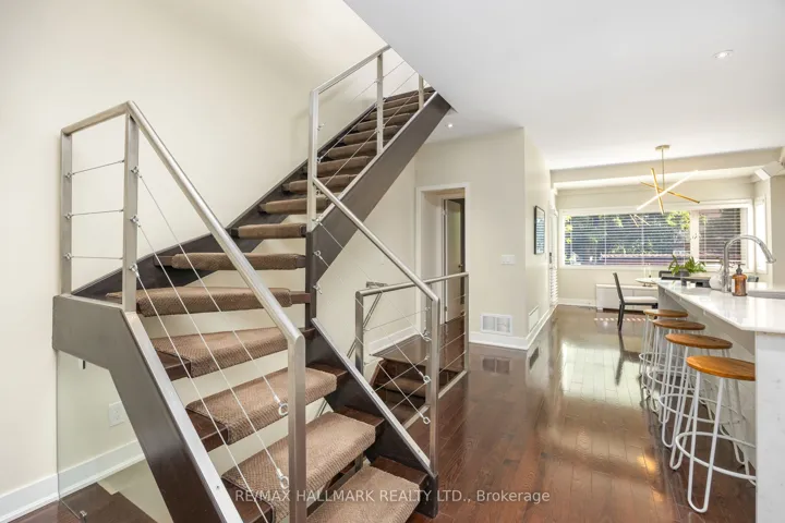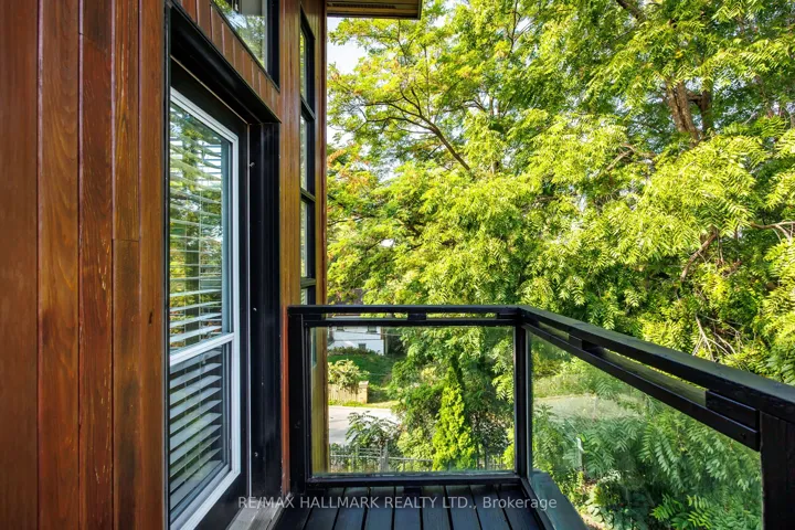 +"PublicRemarks": "Rarely available modern 2 + 1 bedroom home backing onto the Don Valley ravine. The open concept main floor is filled with natural light from expansive front windows overlooking the trails, creating a seamless connection to nature right outside your door. Upstairs, two spacious bedrooms lead to a private rooftop patio the ultimate spot for entertaining or quiet evenings under the stars. The fully finished basement offers a flexible bedroom/office space with a walkout to the rear laneway and convenient carport parking. A unique opportunity to enjoy urban living with direct access to the Don Valley trail system, parks, and transit, all in a quiet, tucked-away setting."