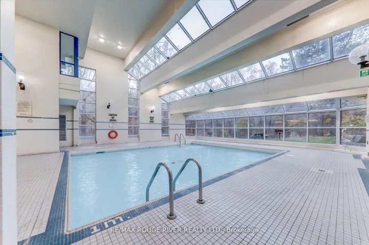 +"PublicRemarks": "Exceptionally well-located, painted bright (2025), and spacious condo featuring 2 bedrooms and 2 full bathrooms. Within walking distance to the University of Toronto, Pan Am Centre, and Centennial College Morningside Campus. This well-maintained unit offers ample visitor parking and is close to hospitals, shopping, grocery stores, and essential amenities. Enjoy 24-hour security, an indoor pool, a tennis court, a recreation room, and a fitness center. In-unit laundry for added convenience. Utilities are included in the rent. Work permit holders and students are welcome."