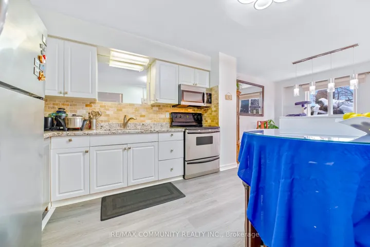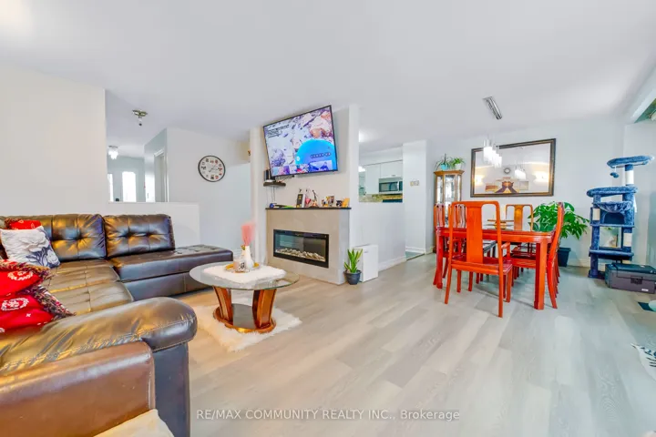 +"PublicRemarks": "This well-kept two-storey condo townhouse offers over 2,000 sq ft of total living space in the sought-after Seven Oaks neighbourhood. The main floor features laminate flooring throughout and a bright open-concept living and dining area complete with a cozy fireplace, perfect for everyday living and entertaining. The upgraded kitchen is finished with quartz countertops and stainless-steel appliances. The second-floor features four generously sized bedrooms and a full bathroom, offering comfortable and functional space for the entire family. The finished basement provides valuable additional living space with a large rec room, an extra bedroom, and a laundry room, presenting excellent potential for an in-law suite. Monthly maintenance conveniently includes water, Rogers cable, and internet, adding exceptional value. Located in a family-friendly complex with ample visitor parking, this home is steps to parks, schools, transit, and the Toronto Pan Am Sports Centre, and just minutes to Centennial College, U of T Scarborough, Scarborough Town Centre, hospital, shopping, and Hwy 401. Move-in ready and a must see."