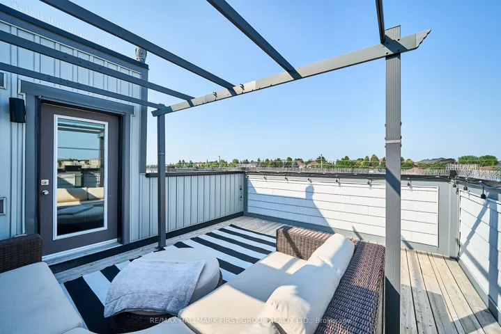 +"PublicRemarks": "Welcome to this beautifully upgraded executive townhome. Located in a highly sought-after community just minutes from Highways 403 and 407, and steps from shopping, dining, and everyday conveniences. This spacious 3-storey home boasts upgraded hardwood flooring on the main level and a solid oak staircase. The bright and open second level features a sleek kitchen with stainless steel appliances, quartz countertops and upgraded backsplash and light fixtures. The kitchen flows seamlessly into the dining and living area which boasts a stunning stone feature wall. Step out onto the balcony for a perfect extension of your living space. Upstairs you'll find two bedrooms, with the primary bedroom offering a closet and a private 3-piece ensuite. The home offers an expansive rooftop terrace an entertainers dream with sweeping views. The ground level features a dedicated laundry area, interior entry from the garage, and additional storage space."