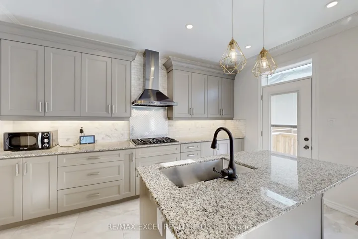 +"PublicRemarks": "Beautifully Upgraded Family Home Featuring Five Bedrooms, Quality Engineered Hardwood Flooring, Pot Lights, Crown Moulding & Freshly Painted Throughout. The Open-Concept Layout Is Highlighted By A Striking Two-Sided Fireplace And A Gourmet Kitchen With Premium Finishes, Walk-In Pantry & Butler Servery, And Elegant Panelling Throughout. A Main-Floor Office And Upgraded Staircase Add Both Function And Style. Living Room Includes Custom Shelving & Bench. Upstairs Offers A Spacious Primary Retreat Complete With A Five-Piece Ensuite And Custom Closet, A Convenient Laundry Room, Upgraded Zebra Blinds, A Jack-And-Jill Bathroom, A Semi-Ensuite. Interlocking In The Front Yard. Close To Many Amenities And Hwy 412/401. A Must See!! EXTRA: Existing: Kitchenaid (Stove, Dishwasher, Bar Fridge) Washer & Dryer, Brand New Fridge. All Electrical Light Fixtures, All Window Coverings, Furnace, Central Air Conditioner, Water Softener, Sound System, Garage Door Opener + Remote, Central Vacuum (Deluxe Package)."