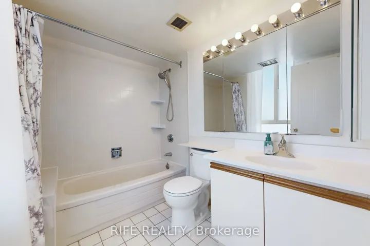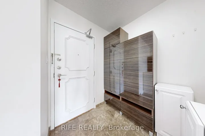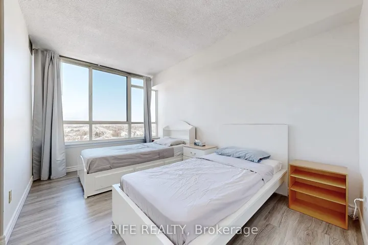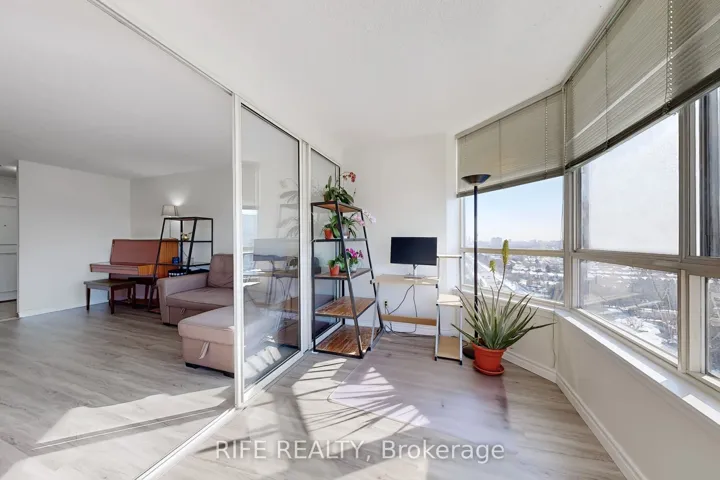 +"PublicRemarks": "Bright & Spacious Corner Unit Approx. 1,300 Sq. Ft. Newly renovated with laminate flooring throughout. This sun-filled suite offers 2 large bedrooms, 2 full bathrooms, plus a fully enclosed den with door and window, featuring breathtaking, unobstructed views-easily convertible into a third bedroom, home office, or guest room. The primary bedroom includes a private ensuite, walk-in closet, and elegant bay window. Large windows provide exceptional natural light with no buildings blocking the view, and on clear days, even a glimpse of Toronto's downtown skyline. Separate laundry room with large storage area. Exceptionally well-maintained building with condo fees including water, heat, A/C, hydro, and cable TV. Unbeatable location with a supermarket and a variety of restaurants right downstairs; banks within a 5-minute walk, and quick access to Highways 401 and 404 within a 10-minute drive. Exceptionally well-maintained building with condo fees including water, heat, A/C, hydro, and cable TV."