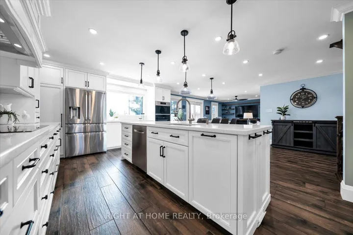 +"PublicRemarks": "Fully detached all-brick home in a central, family-friendly Ajax neighbourhood, close to schools, parks, shopping, and everyday amenities-ideal for growing or multi-generational families with over 3700 square feet of finished living space. The beautifully renovated main level (2021) offers premium wide-plank porcelain tile, a spacious open entry, and a striking solid oak staircase with black iron spindles. A private office or library features custom walnut cabinetry, quartz countertops, and built-in desks, while the family room showcases matching walnut built-ins and a cozy electric fireplace. The kitchen is truly the heart of the home and a statement in total luxury. Designed for both entertaining and everyday living, it features an oversized island, high-end finishes, and expansive windows that flood the space with natural light. A dedicated coffee bar and additional prep sink add both elegance and functionality, while premium Décor appliances-including a convection oven, convection microwave, warming drawer, induction cooktop and Bosch dishwasher-complete this exceptional culinary space. The upper level offers four spacious bedrooms with large windows, custom closet organizers, and premium oak hardwood flooring, all updated in 2021. The primary retreat includes a walk-in closet and a spa-inspired ensuite with an oversized shower and built-in soaking tub. The fully finished basement extends the living space with a wet bar, versatile rooms ideal for a home gym, office or more flexible living space, a washroom, and ample storage. Step outside to a private, low-maintenance backyard oasis with no rear neighbours. Artificial turf, stamped concrete walkways, and a saltwater pool system create the perfect retreat for relaxation and entertaining. Additional highlights include a two-car garage with access to the laundry room and programmable exterior lighting. Turnkey and impeccably updated-simply move in and enjoy!"