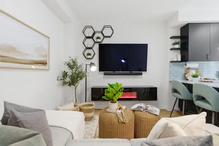 +"PublicRemarks": "Just 4 Years New, This Beautiful Two-Level Townhome Offers A Thoughtfully Designed, Open-Concept Main Level That Maximizes Both Space And Flow. Vinyl Flooring Runs Throughout The Main Floor, Which Also Includes A Convenient Powder Room And A Large Closet. The Sleek, Modern Kitchen Seamlessly Connects To The Living Area, Creating A Bright And Functional Space Ideal For Both Everyday Living And Entertaining. The Living Room Is Warm And Inviting, And Features An Electric Fireplace. The Kitchen Features A Stylish Backsplash, Quartz Countertops, Stainless Steel Appliances, And A Peninsula With Additional Seating That Naturally Bridges The Kitchen And Living Room. A Walk-Out From The Kitchen Leads To A Cozy Private Balcony, The Perfect Spot To Enjoy Your Morning Coffee. The Lower Level Features Two Bedrooms With Above-Grade Windows, A 4-Piece Bathroom, And Convenient In-Suite Laundry. This Home Presents An Excellent Opportunity To Own A Modern Townhome In A Central Location, Just Minutes To All Amenities, Transit, Highway 401, And Nearby Running Paths!"