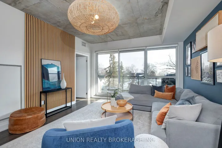 +"PublicRemarks": "If you love a spacious home, the convenience of a walkable community, and never shovelling snow again, this is it! Experience luxurious living in this natural light-filled, south-facing 3-bedroom, 2-bathroom corner suite in the sought-after Southwood Condos. Offering 1,218 sq ft plus an over 200 sq ft private terrace overlooking the treetops, this home combines style, comfort, and function. The upgraded kitchen features a quartz waterfall island with a matching backsplash, stainless steel appliances, a custom built-in pantry, a deep black sink, black hardware, and additional custom storage. Thoughtful upgrades throughout include solid wood doors, redesigned hall closet with dual access, custom closet organizers, acoustic feature wall, pot lights, ceiling fans, modern light fixtures, surface tiles on the terrace, and blinds in all rooms. With square footage comparable to many two-storey homes, this suite offers flexible space in a vibrant, walkable neighbourhood. Leave your car in the underground parking -a grocery store on the main floor, two TTC lines at your doorstep, a quick walk to the Danforth GO Station (just 10 minutes to Union Station), Queen Street and Kingston Road shops, the lake and boardwalk, great schools, the YMCA, and more."