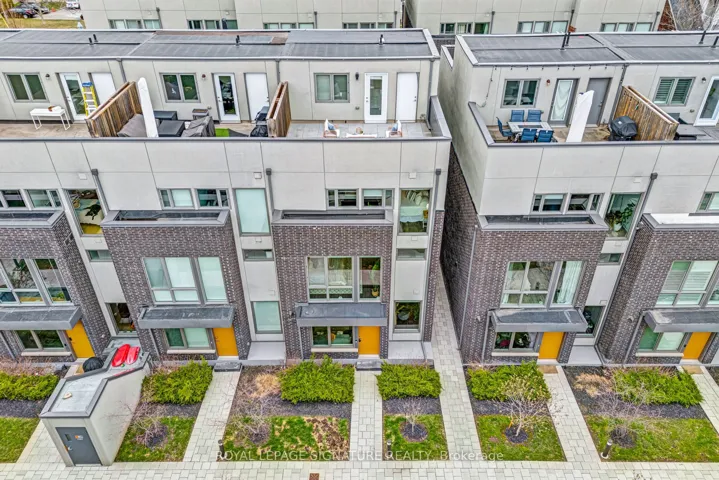 +"PublicRemarks": "Crazy for Curzon! This rarely offered spacious and ultra-modern 3 bed 3 bath townhome is the epitome of Leslieville living, just steps from Queen St E. The large modern windows throughout allow sunshine to fill the rooms, no matter the season. The main floor offers a great living space with a cozy fireplace, a kitchen with full size appliances (gas stove), a large island, a dining space, and a convenient powder room to make every day living a breeze. On the second floor you'll melt when you discover the incredible primary retreat. This room easily fits a king-sized bed with plenty of room to spare for additional furniture, a sizeable walk-in closet with a bright window, and a spa like bathroom with a double sink, soaker tub, and separate shower. On the next level are two good sized bedrooms and another full washroom. The top floor features a showstopping west facing rooftop terrace with a CN Tower view to enjoy incredible sunsets all year long. The rooftop terrace includes custom floating porcelain tile flooring as well as two natural gas hookups. There is also a rough-in for a wet bar to create the ultimate entertaining space. Through the basement you have direct access to the heated garage with 2 car parking and a uniquely MASSIVE private storage room which can be used as workshop (includes power and ventilation). The home also includes geothermal heating and cooling which allows for ultimate efficiency on your monthly bills. The location truly can't be beat in this highly sought-after neighbourhood! On the property is its own parkette as well as a great community of people. This home is stone's throw to a large variety of restaurants, cafes, shops, the TTC, DVP and Greenwood Park."