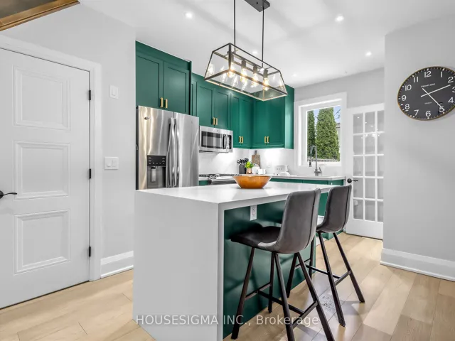 +"PublicRemarks": "A rare legal duplex opportunity, this fully renovated semi-detached home delivers stylish, move-in-ready living on a quiet, prestigious street in one of Toronto's most desirable family neighbourhoods. An enclosed front foyer leads into a sun-filled main floor featuring engineered hardwood flooring, pot lights, and built-in ceiling speakers. The inviting living area is highlighted by a sleek electric fireplace and large picture window. The stunning gourmet kitchen serves as the heart of the home, offering a waterfall quartz island, matching quartz countertops and backsplash, and a layout that overlooks the backyard-perfect for entertaining and everyday living. Upstairs offers three generously sized bedrooms. The primary retreat is elevated with its own electric fireplace and a fully remodelled ensuite completed in 2024, featuring a modern stand shower. A second full bathroom completes the upper level with style and convenience. The fully finished basement with a separate entrance adds exceptional versatility, offering a spacious open-concept family room, second kitchen, large bedroom with ample closet space, and a full three-piece bathroom-ideal for extended family, guests, or potential rental income. Outdoors, the home continues to impress. The backyard is designed for both relaxation and entertaining, featuring a large deck, low-maintenance turf grass, and a new fully powered modern studio with expansive glass doors that open seamlessly to the yard. Whether used as a private home office, creative studio, gym, or quiet retreat, it offers a flexible space rarely found in the city. Additional upgrades include new roof, waterproofing, eavestroughs, and downspouts. Located steps to top-rated schools, parks, transit, and local amenities, this turnkey home offers the perfect blend of comfort, flexibility, and urban convenience."