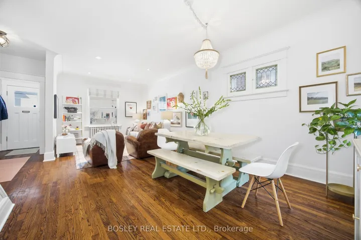 +"PublicRemarks": "As one chapter ends, another begins. Welcome to Playter Estates! This warm and inviting family home, situated on a tree-lined street in the coveted Jackman School district, is a rare and wonderful opportunity. The covered front porch is the perfect spot to while away on a summer day, enjoying the lilac blooms and flowering shrubs. The open-concept living and dining room has an abundance of charm, with high cove ceilings, stained glass window and hardwood floors. A truly inviting space, perfect for entertaining with family and friends. The recently updated kitchen is filled with light and features new flooring, counter and cabinetry. Open to the main floor family room, it provides continued connection with its direct access to the backyard and a spacious deck. Upstairs you will find 3 bedrooms and a tandem office that allows for flexible use of space to suit your needs. The east facing bedroom, overlooking the garden, is flooded with natural light. The generously sized primary bedroom features a bay window, wall-to-wall closets and hardwood floors. The finished lower level completes the home with a large open concept rec room and 3pce bath. There is private parking for one car in the detached garage and the possibility of a second spot for a small car with the removal of the back gate. The double wide laneway provides convenient and easy access and has Laneway Housing Potential. Located in a Sought-after Community, a Short Walk to Chester Station, Withrow Park and the many restaurants and shops on the Danforth. Not to be missed!"